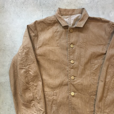 今回当店のオリジナルカバーオールを製作するにあたり、以前にもデニムブラウスを製作したときに大変ご好評をいただいた9.5ozのブラウンライトオンスデニムを採用しました。