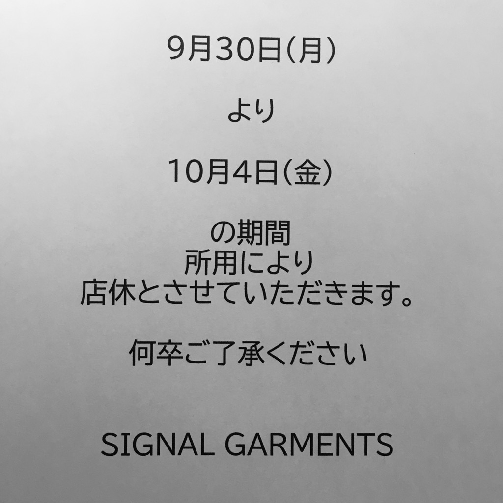 いつもSIGNAL GARMENTS SHOP NEWSをご覧いただき、ありがとうございます。