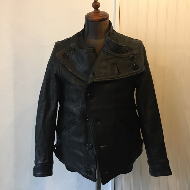 このイカ襟のレザージャケットとしては1930年代から1950年代まで存在した”Peter’s”が有名ですがそのほとんどはフロントはジッパー留めの物ですのでこのボタン留めのスタイルはとても珍しい仕様であると言えます。