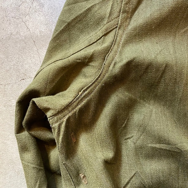 一ヵ所、左の袖付け背中側に縫い直しの痕がございます。当時の縫い直し箇所となります。着用には全く問題ない部分ですが追記させていただきます。