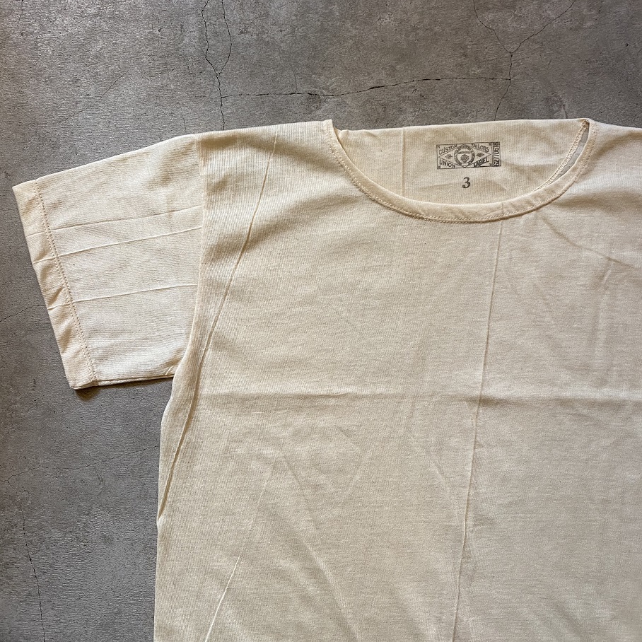 1940年代のアメリカ軍の物と思われる天竺生地の筒の状態をNEW OLD STOCK(DEAD STOCK)で所有していた物を今回、Tシャツに仕立てました。