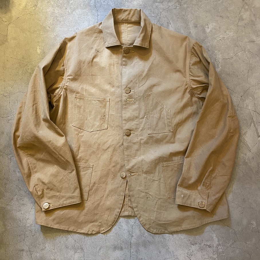 当店のオリジナルのジャケットの中でも特に人気の”EARLY STYLE CHORE JACKET”を1940年代頃に使われていたビンテージテントを解体し、生地を使用して製作いたしました。