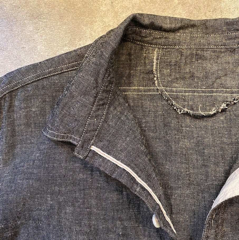 サイズも2サイズご用意しました。ワークスタイルには定番のシャンブレーシャツですが、やはり古いデザインの物は特に良いですよね・・・