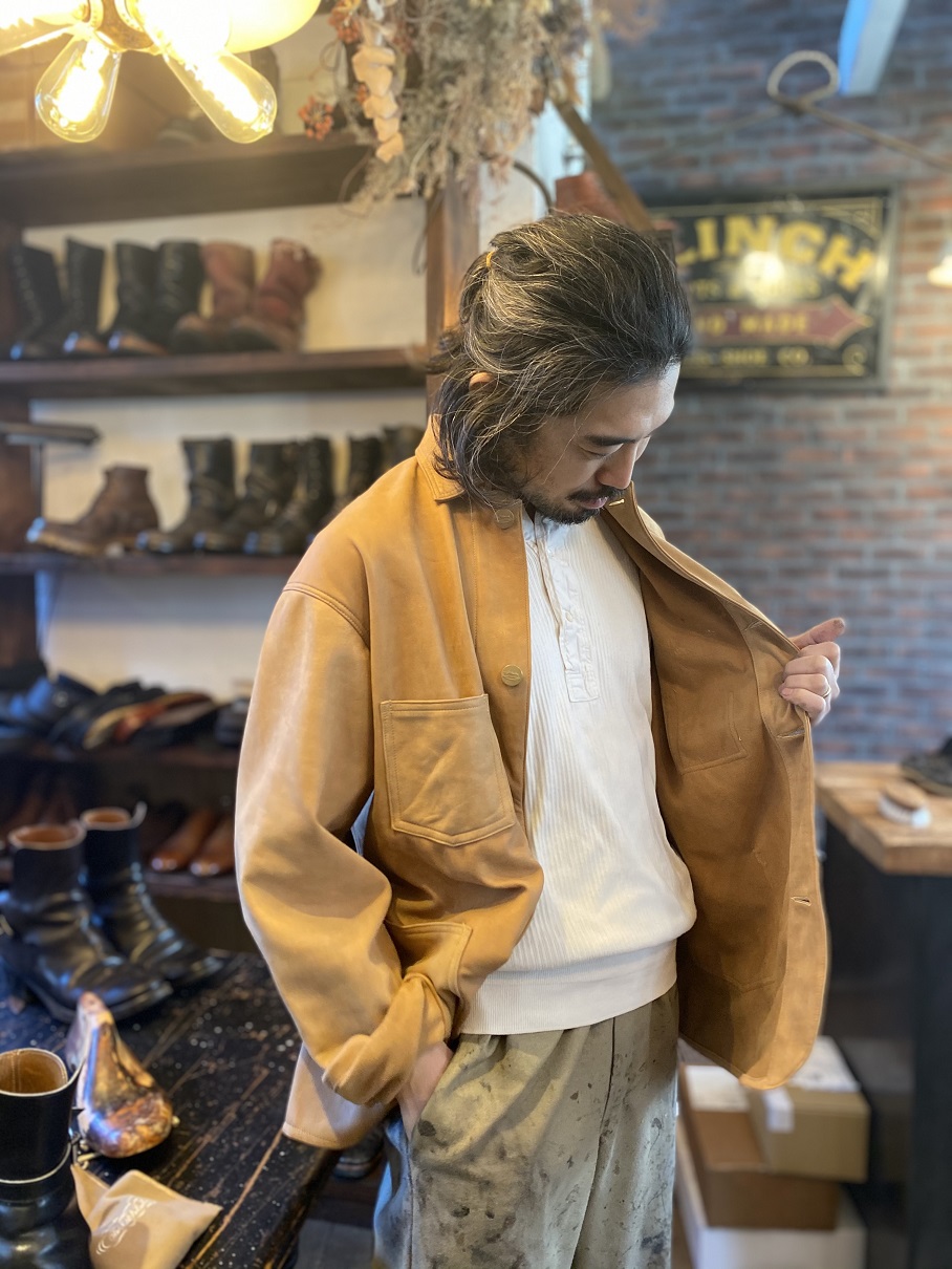 店頭分としてご用意しておりましたオリジナルの商品はすぐに完売となりましたが、緊急事態宣言が発令されたこともあり、オンラインショップ用にご用意しておりました1910’s EARLY STYLE CHORE JACKET ”Lamb Leather”を明日(1月10日)の13時よりオンラインショップにて販売をいたしますのでご案内させていただきます。