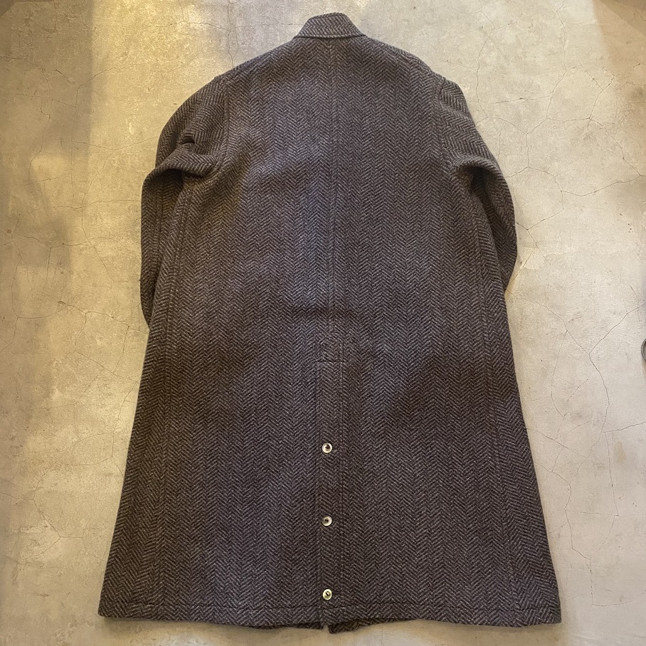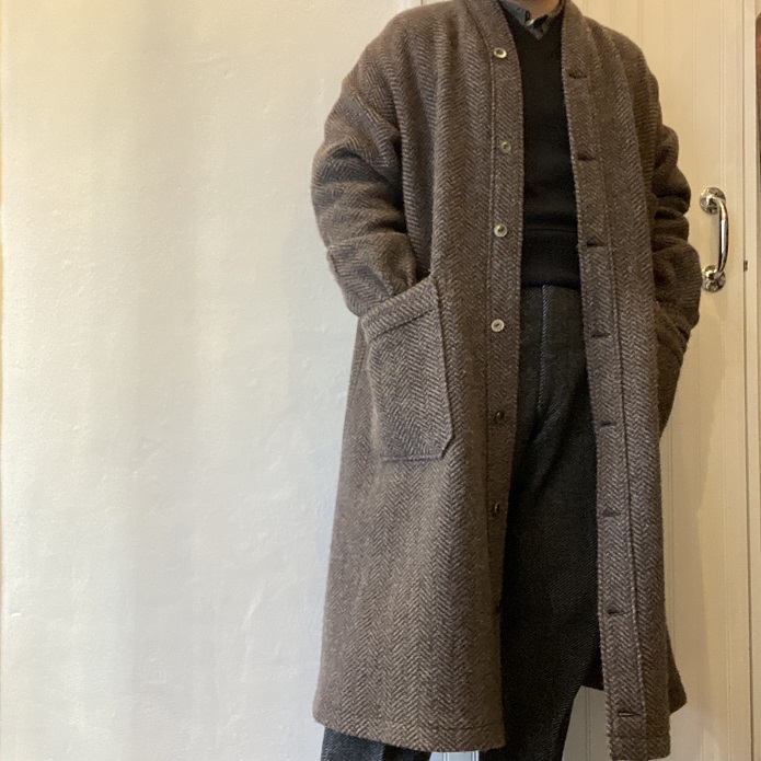 スタイル的には襟なしのロングコートスタイルですが参考としたエンジニアコート同様、アウターとしてはもちろん、薄手のロングコートのインナーとしての役割も果たす万能な一着です。