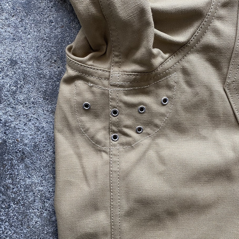 更に脇下には蒸れを防止するためか左右の6個ずつの金属ハトメのベンチレーションが付いているのも非常に珍しいディティールかと思います。