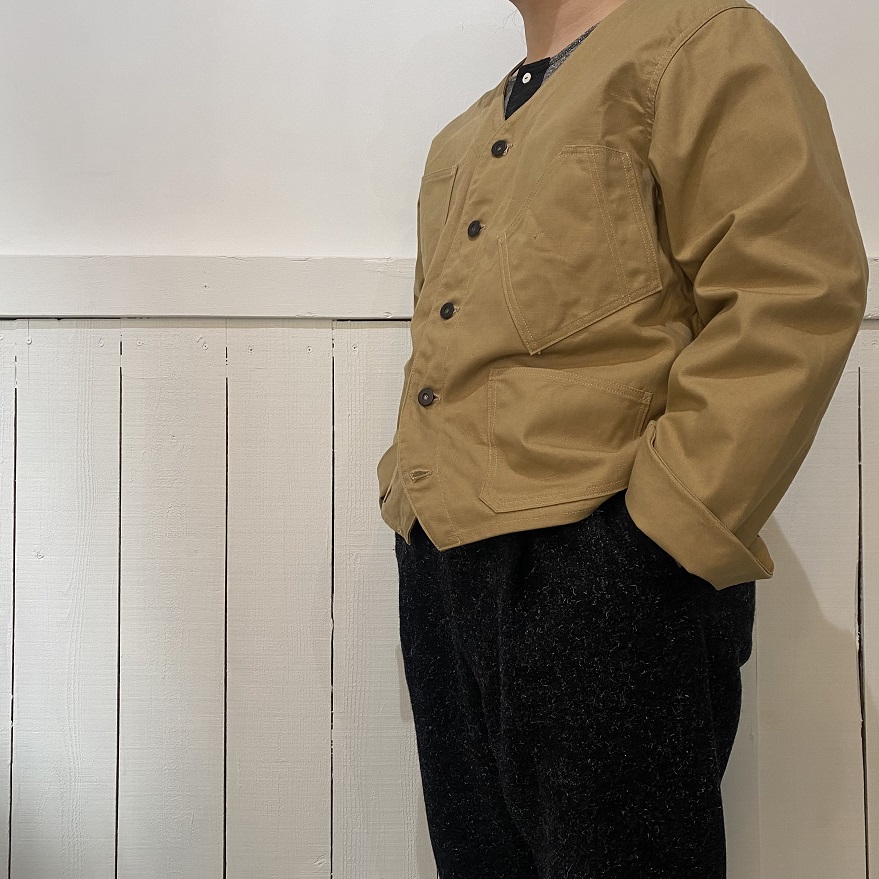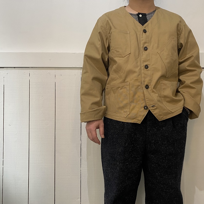 ダック生地という事もあり、デニムジャケットやカバーオールなどとはまた違った着こなしが出来るのではないかと思います。
