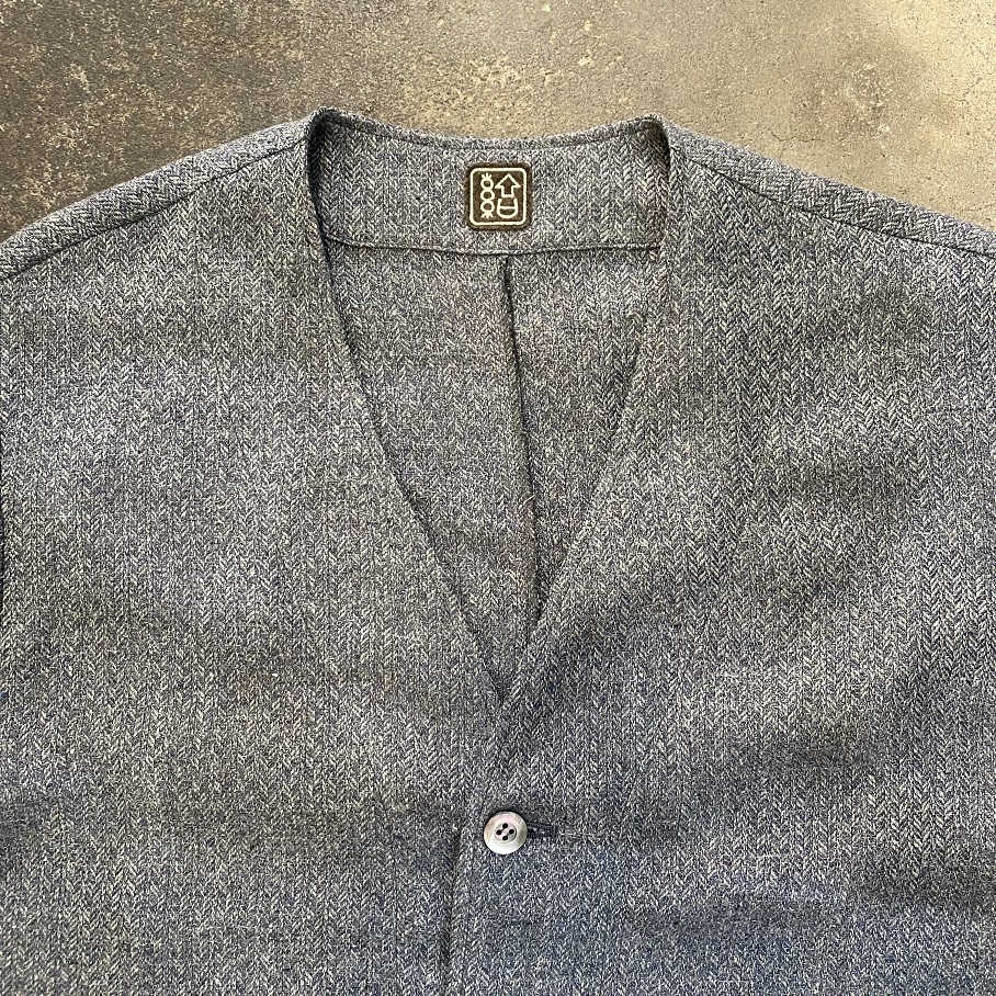 NEW ARRIVALYUI V NECK CARDIGAN -LONG- RIVIERA HERRINGBONE TWEED “BLUE GRAY” YS22-T01VL