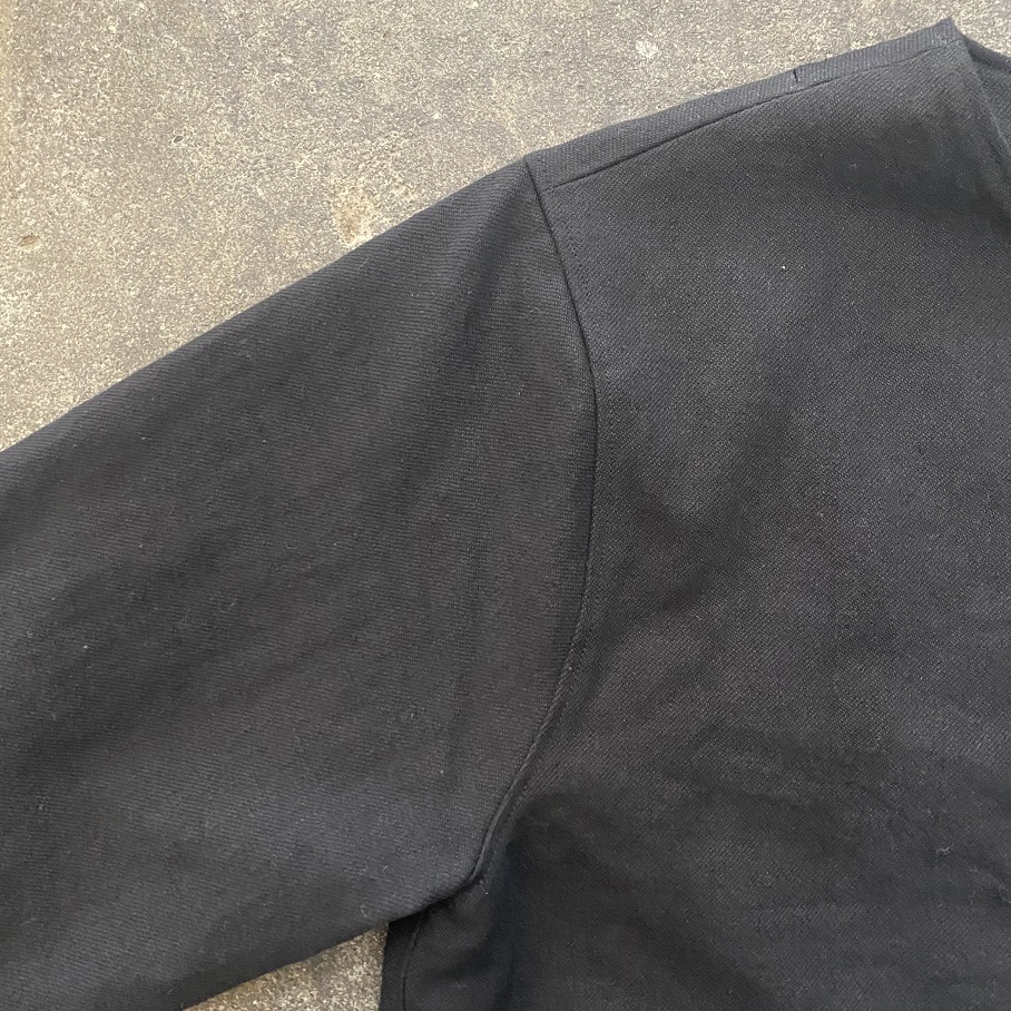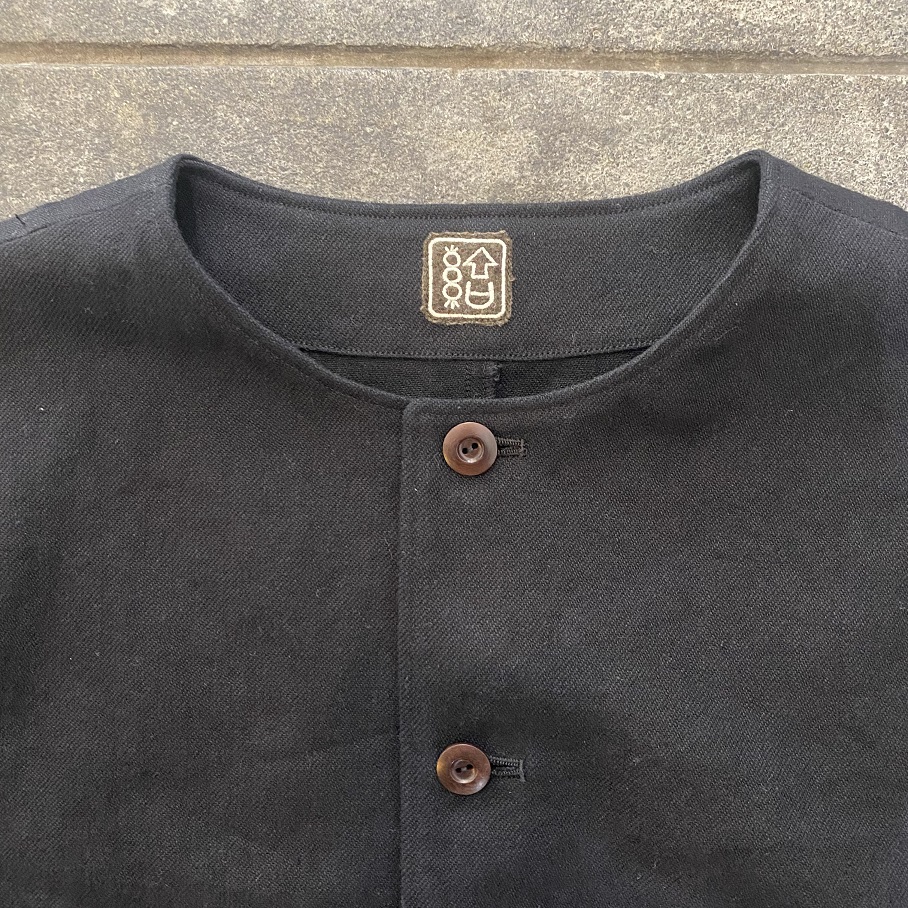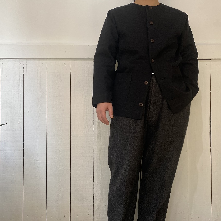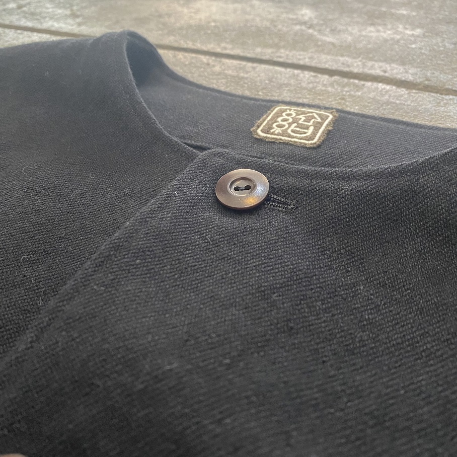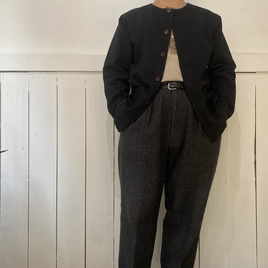 今回はYUIのトラウザーズでもご好評をいただいているギャバジン生地のブラックを使用た”ROUND NECK CARDIGAN”のご紹介となります。