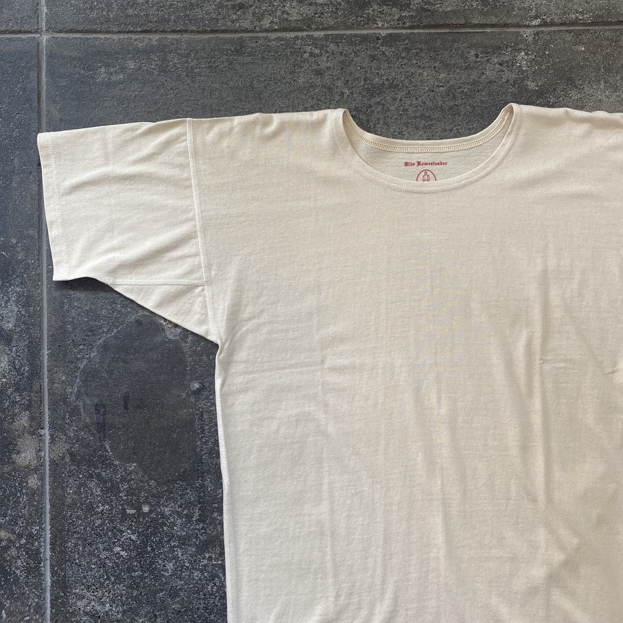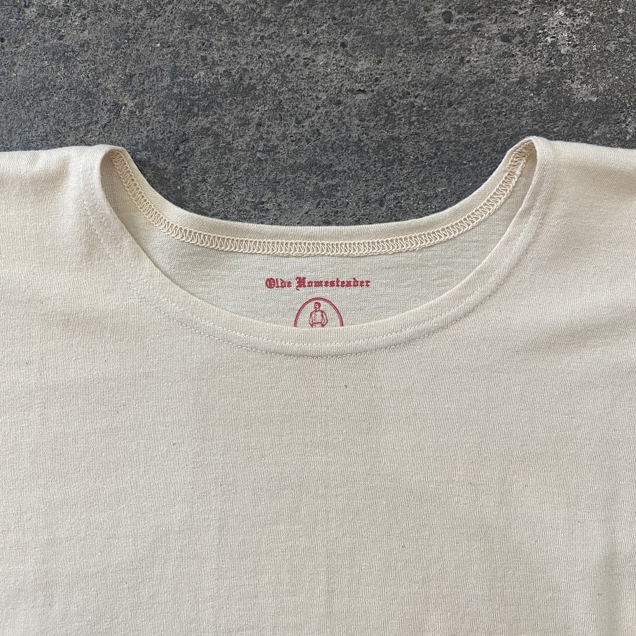一見シンプルな”Tシャツ”に見えるかと思いますがOLDE HOMESTEADERの製品ならではの古のアンダーウェアを紐解いた一着となります。
