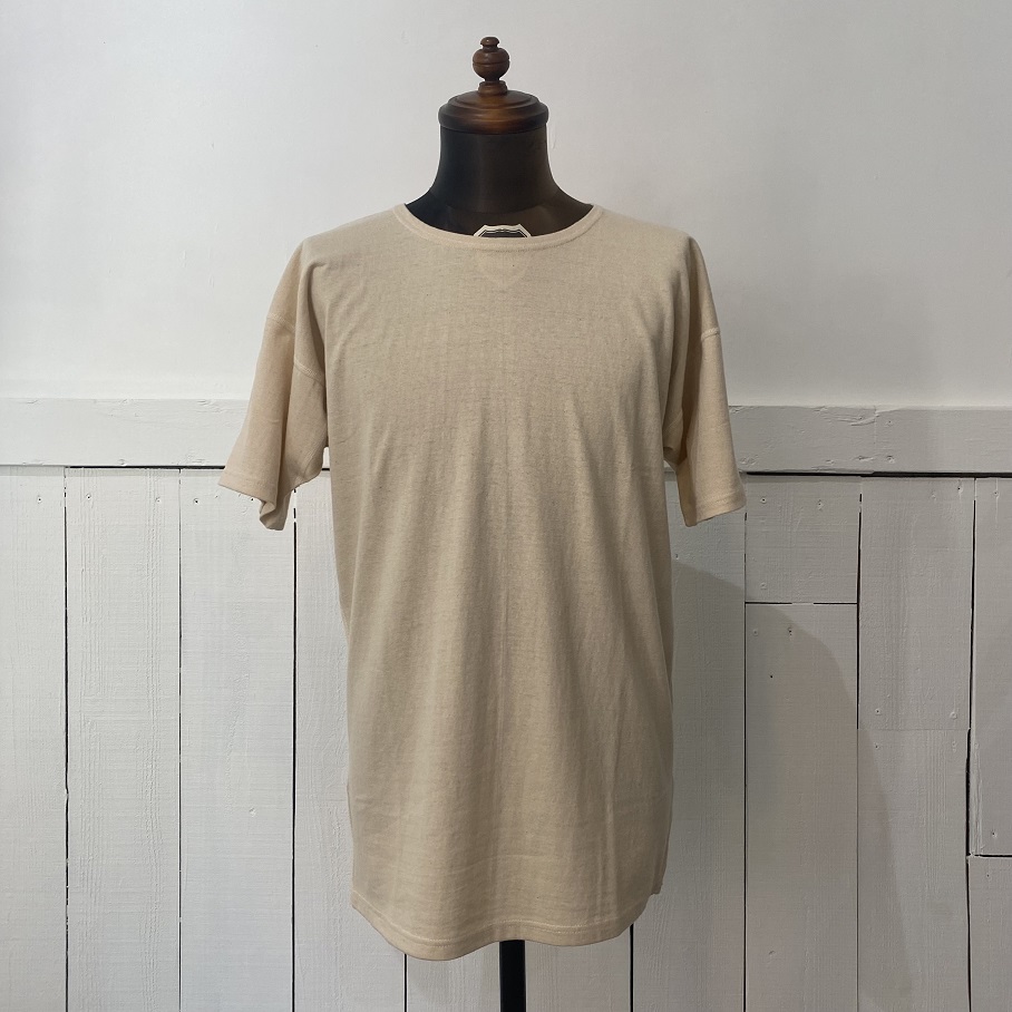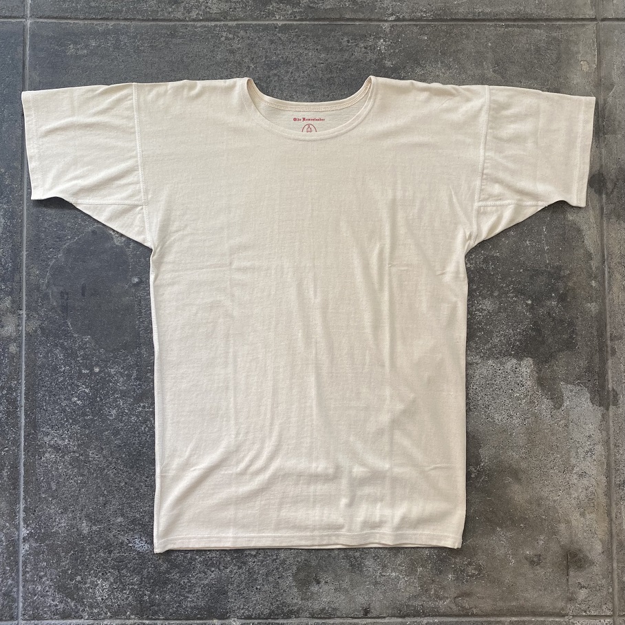着心地の良さで大変ご好評をいただいているOLDE HOMESTEADERより”過去のアンダーウェアから感じてきた普遍的でプリミティブなものの持つ魅力”をテーマに展開する”RUSTIC JERSEY”シリーズの“CREW NECK SHORT SLEEVE”をご紹介させていただきます。