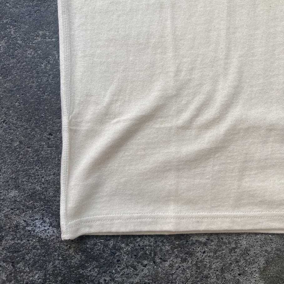 リブなども付かないシンプルなクルーネックのディティールは”広すぎず・狭すぎず”の試行錯誤を繰り返したどり着いたシンプルの極みのようなネックカーブとなっております。