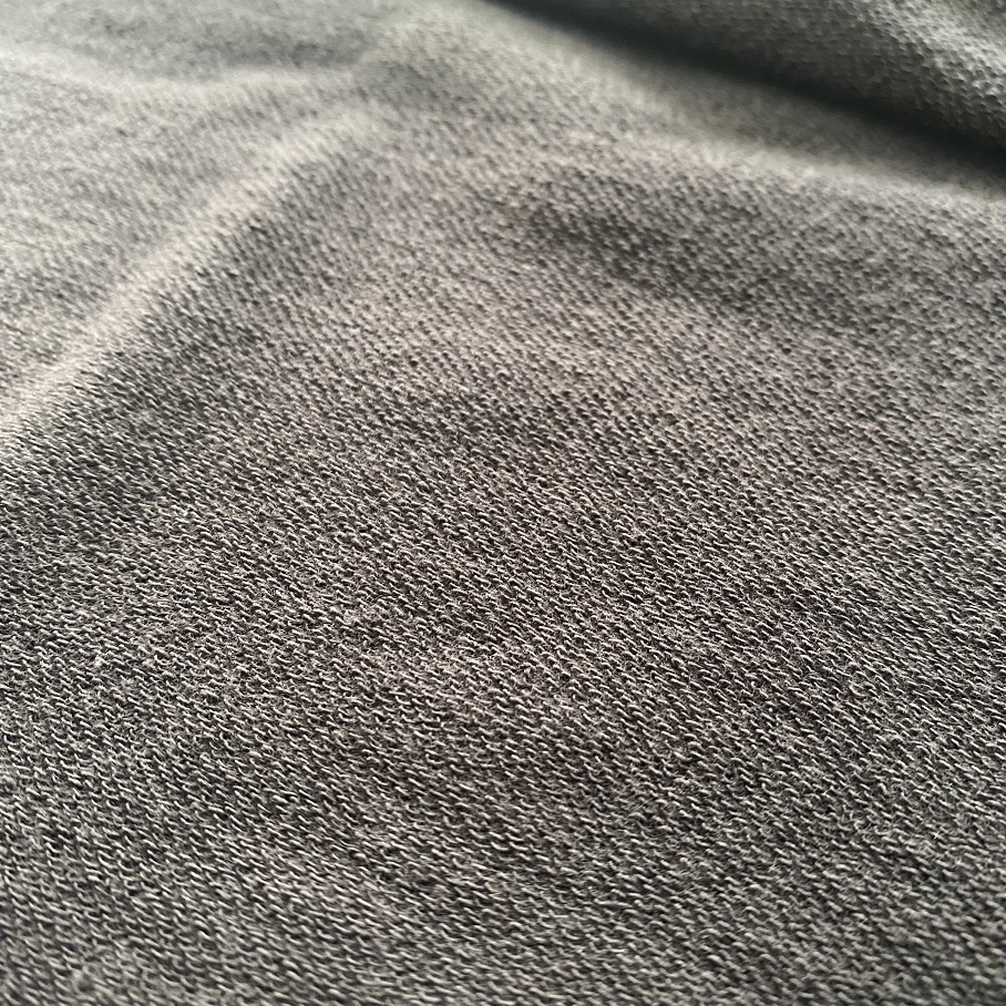 細番手の糸を使用することで肌触りがとてもよく、限界までハイゲージで編立てた生地は適度なハリ感があります。