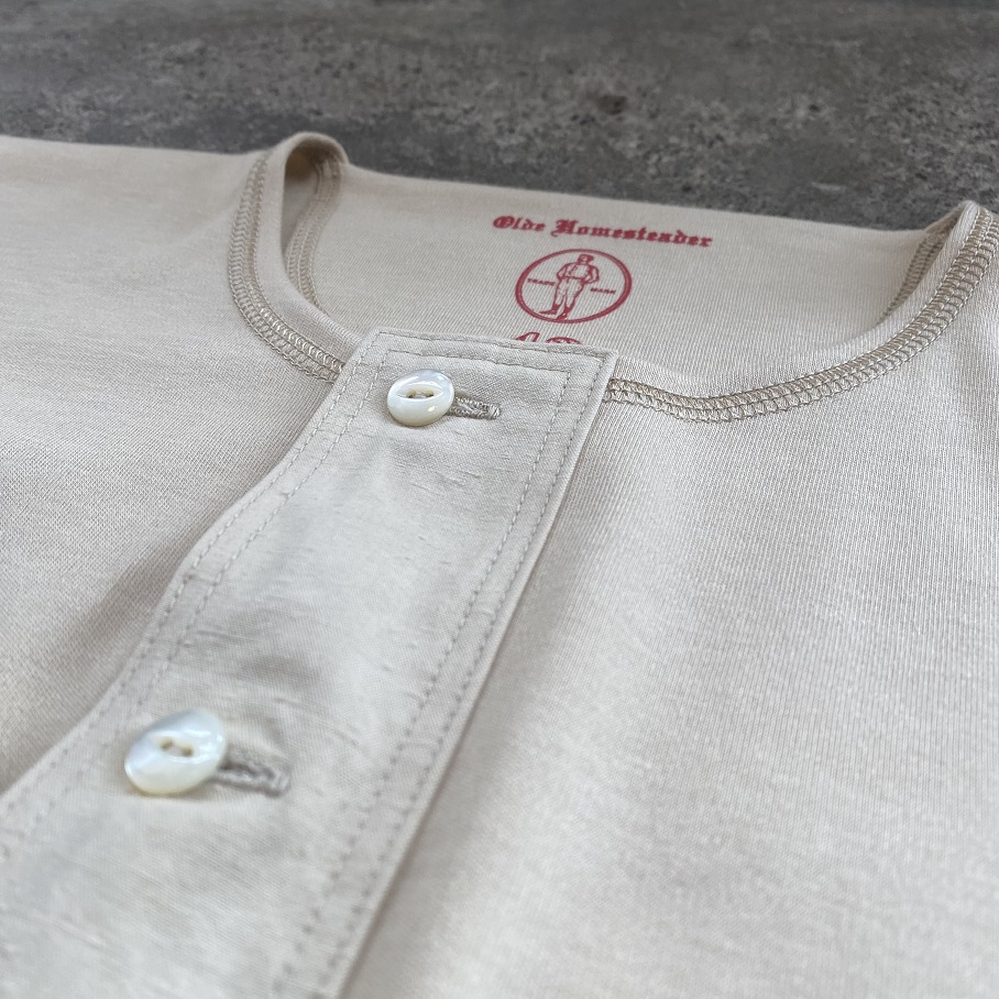 本日はOLDE HOMESTEADERのショートスリーブ・ヘンリーネッの”CHAMPAGNE”(シャンパン)が今年も入荷しましたのでご紹介させていただきます。