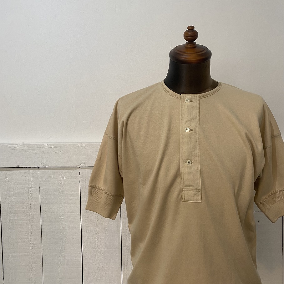 NEW ARRIVALOLDE HOMESTEADER US002 INTERLOCK ”HENLEY NECK SHORT SLEEVE” CHAMPAGNE