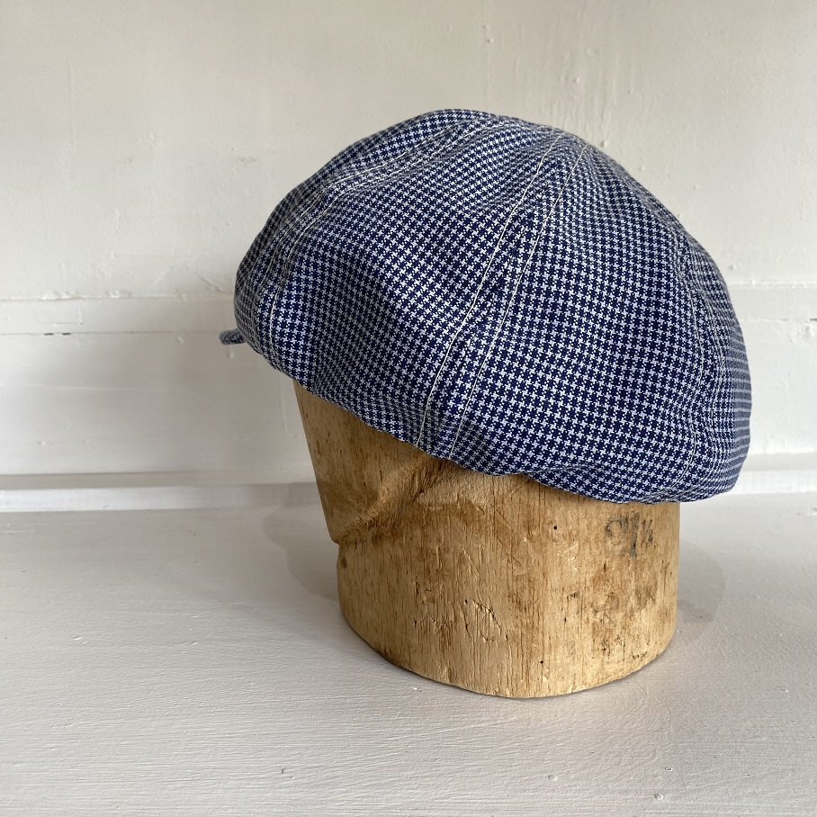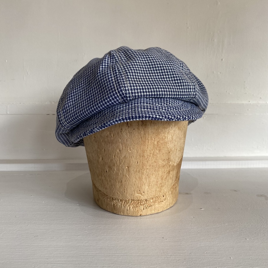 所謂、”キャスケット”等と呼ばれるハンチング帽(鳥打帽)の一種となり、アメリカなどでは新聞売りの少年などが被っていたことからニュースボーイキャップと呼ばれるスタイルの頭頂部に程よい膨らみのある形状をオリジナルパターンにて製作した物となります。