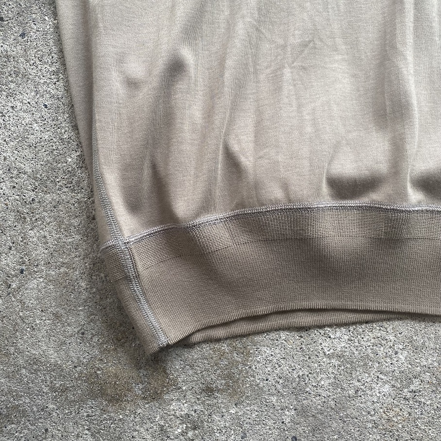 肌に通した時に感じる心地よさであったり、過酷な状況下で機能性や耐久性を求められる物として、過去にイギリス軍やスイス軍で採用されていたことからもその編地に対してとても魅力を感じる生地感です。