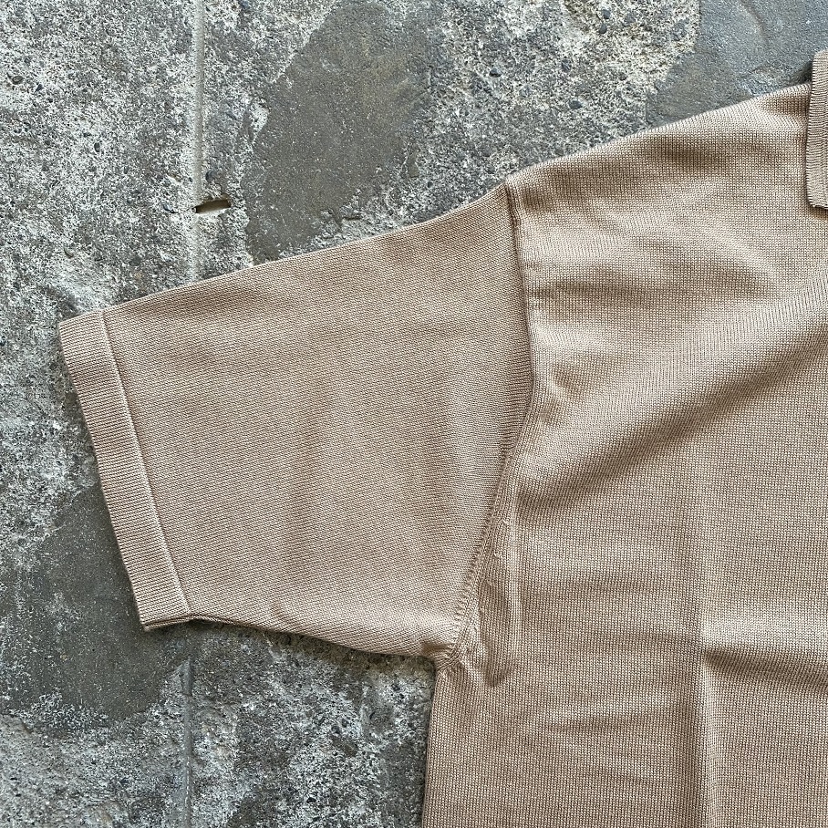 裾の柔らかなリブ仕上げやフラットな袖口、ゆったりとしたシルエットとミラノリブで編み立てた襟により洗練された印象に仕上がった大人の為の上質なニットポロと言えます。