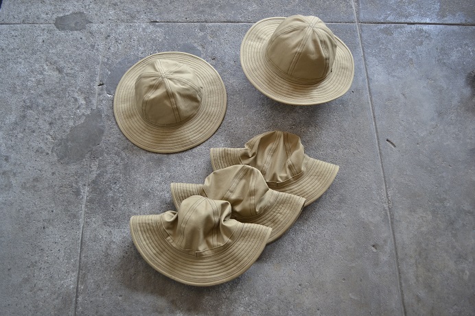 本日は夏に向けてご用意させていただきましたビンテージ生地を使用した当店オリジナルの”1940’s Style Fatigue Hat”のBrown Duck素材を使用した物を明日より販売させていただきたいと思いますのでご紹介させていただきます。