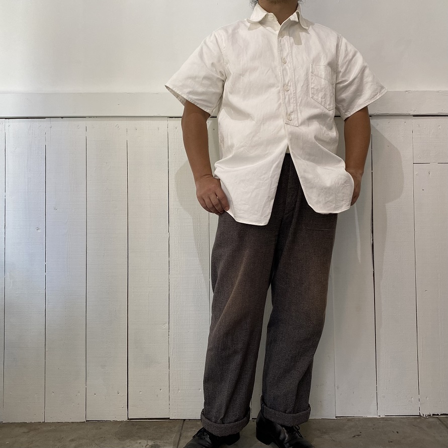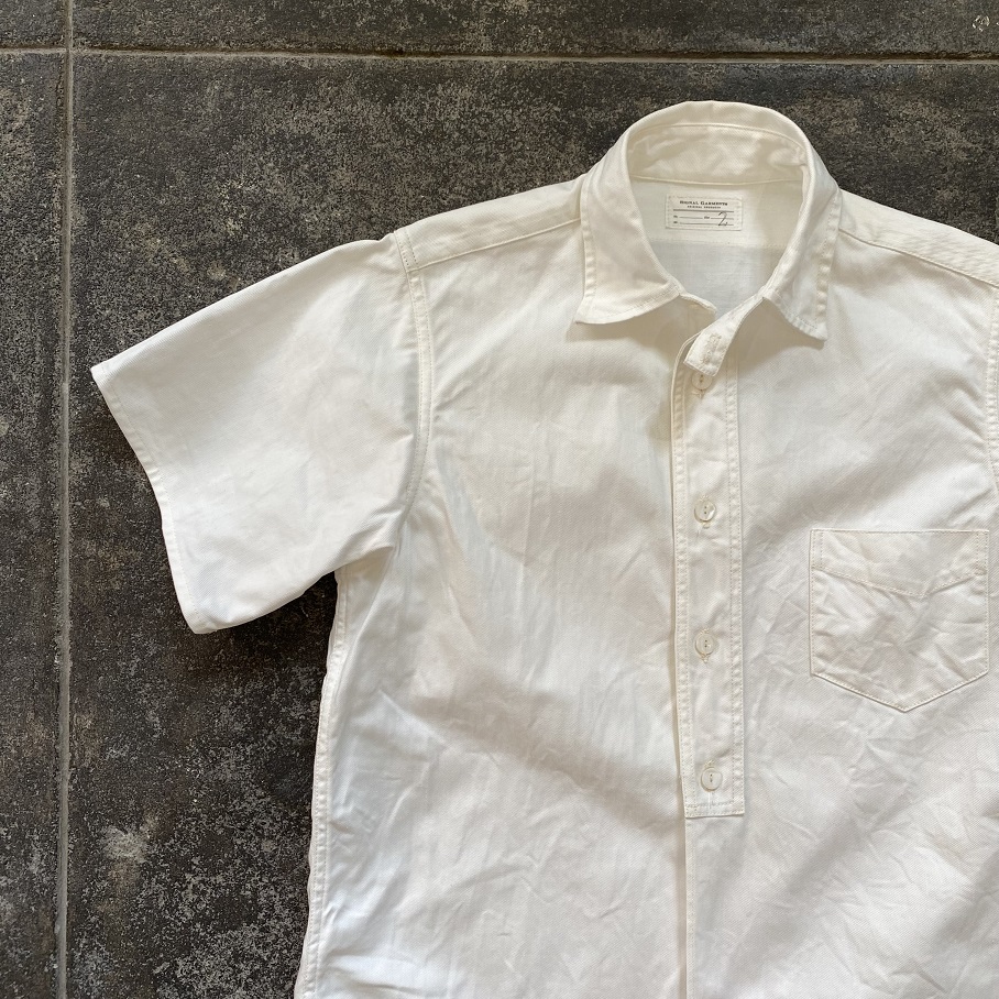毎日、本当に暑いですね・・・少しでも夏が涼しく過ごせるようにと思い、1920年代のシャツを参考にホワイトツイル生地使用したショートスリーブシャツを製作いたしました。