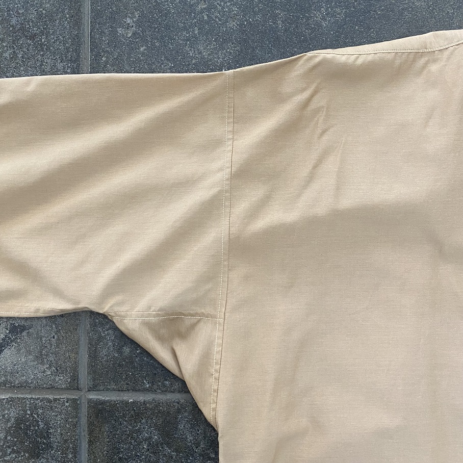 袖付けも脇下にマチの付く形状と肩から袖へと続く直線的な作りは合理性から生まれる実用的なディティールと言えます。