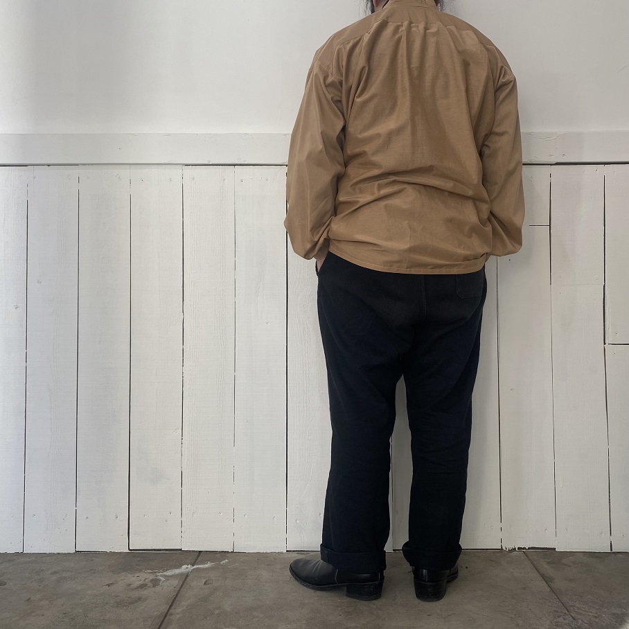 モチーフとしたのは古いドイツのサックシャツで、単純な形状を組み合わせたサックシャツの合理的構造はいかにもドイツらしく、そして今となっては明確にシャツとブルゾンの垣根を超越する存在でした。
