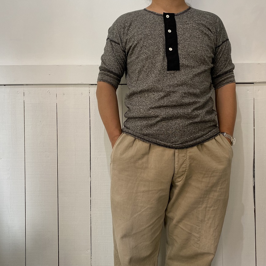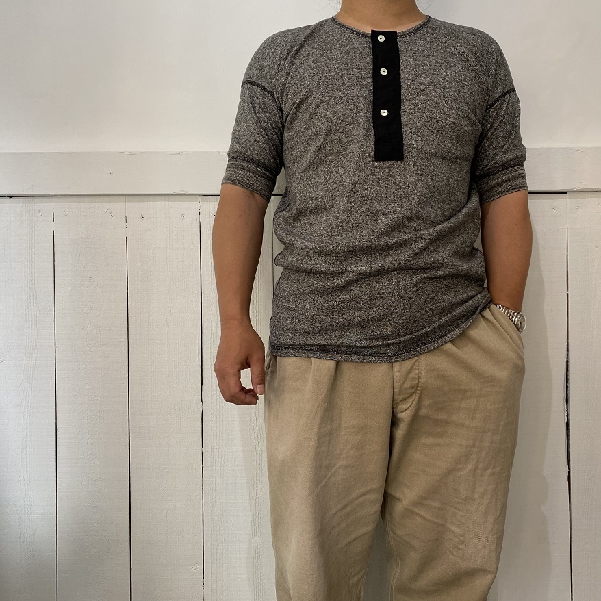 そのOLDE HOMESTEADERに今季、当店より別注アイテムとして製作を依頼しておりましたスペシャルなショートスリーブヘンリーネックが入荷いたしましたのでご紹介させていただきます。