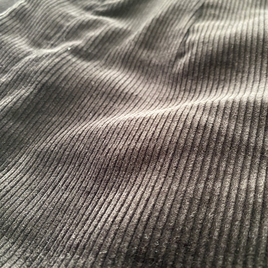 太番手のパンツコールでありながらオーガニックコットンを使用している為、柔らかさがあり、畝が均一に立つように加工工程において工夫を凝らした素材使いとなっております。