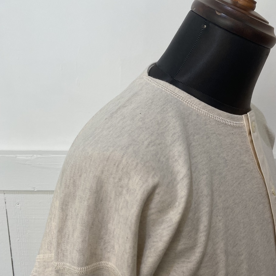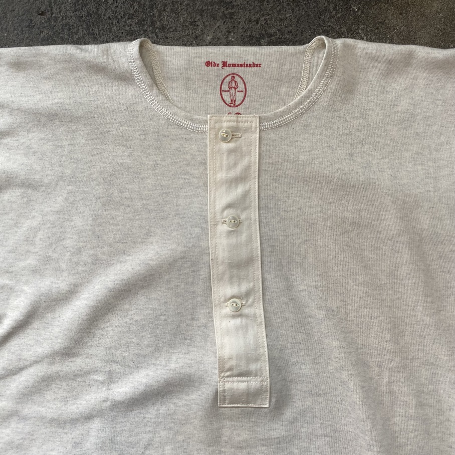 NEW ARRIVALOLDE HOMESTEADER US001 INTERLOCK ”HENLEY NECK LONG SLEEVE” ECRU HEATHER