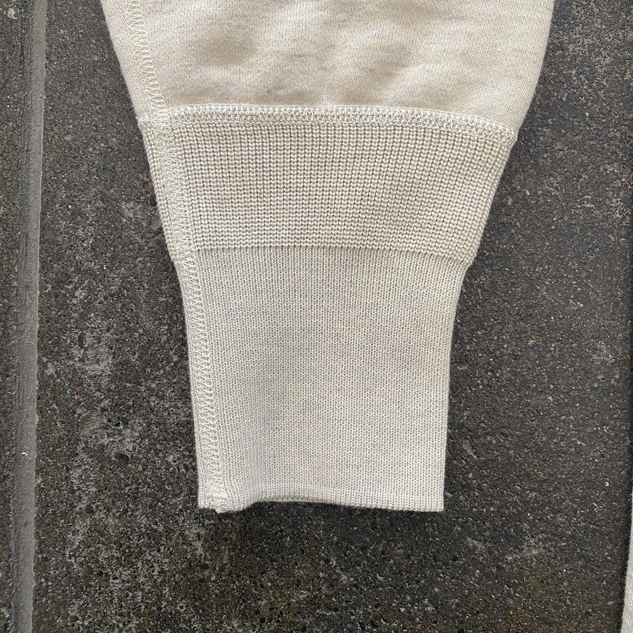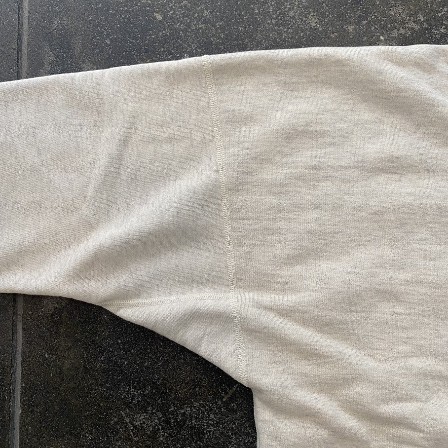 まるでビンテージかのような錯覚をおこすこのECRU HEATHERカラーは所謂”オートミール”等と呼ばれる杢色よりもう少しライトなカラーで今までのコットンフリースシリーズの中では一番WHITEに近い色目となります。