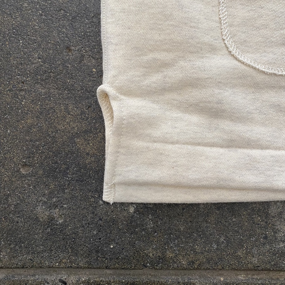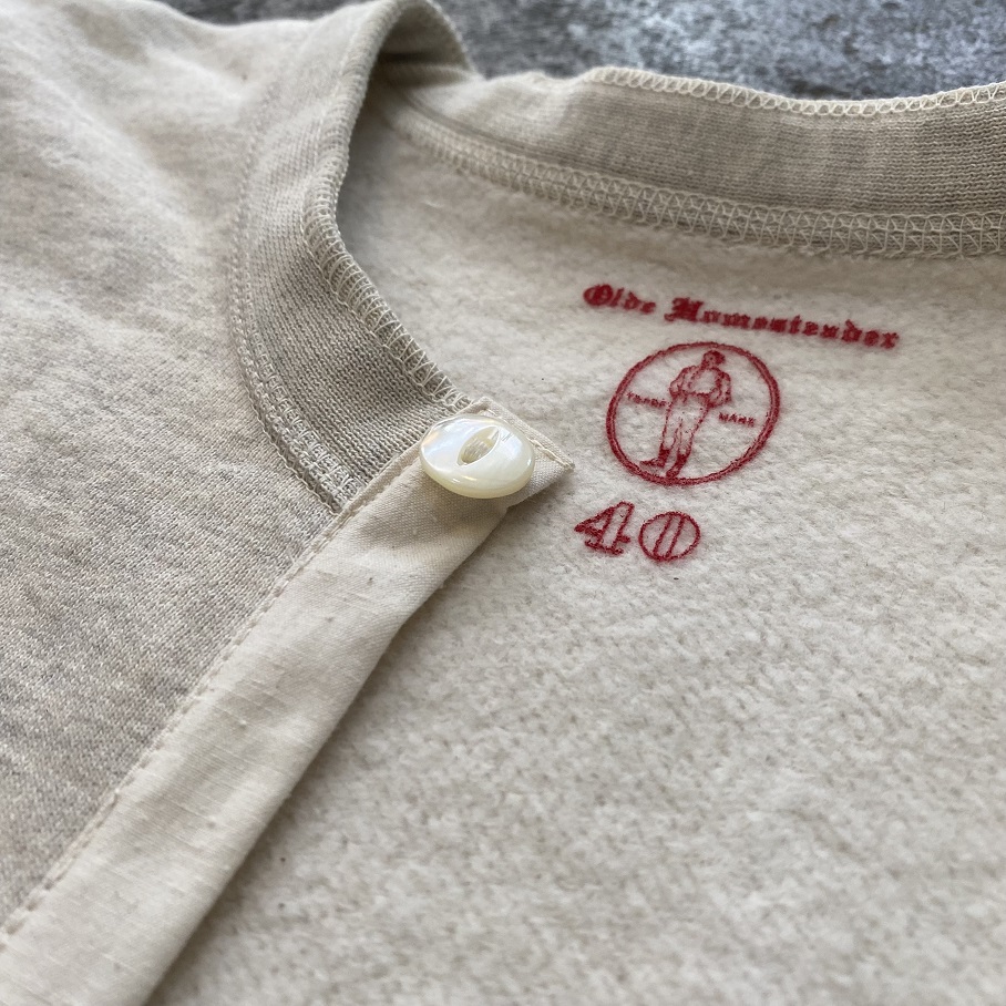 元々は欧州への輸出用と思われる70年以上前のコットンフリースを纏った”Made in Japan”の肌着を参考にOLDE HOMESTEADERの解釈で素材から質感までを再構築した逸品です。