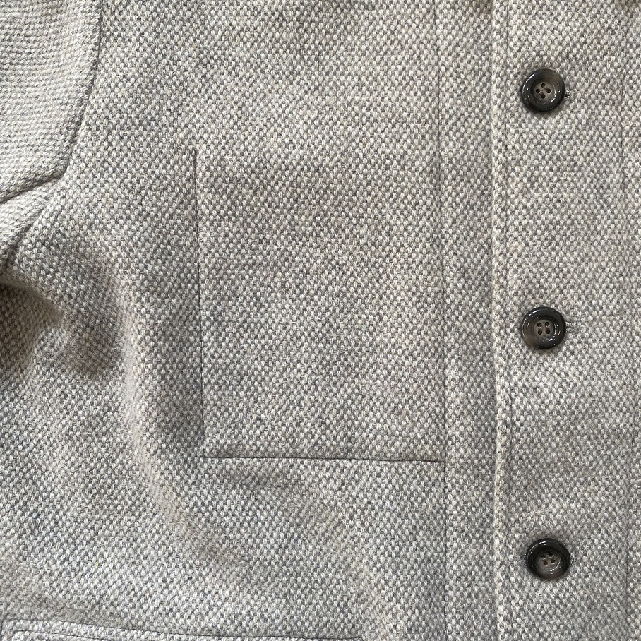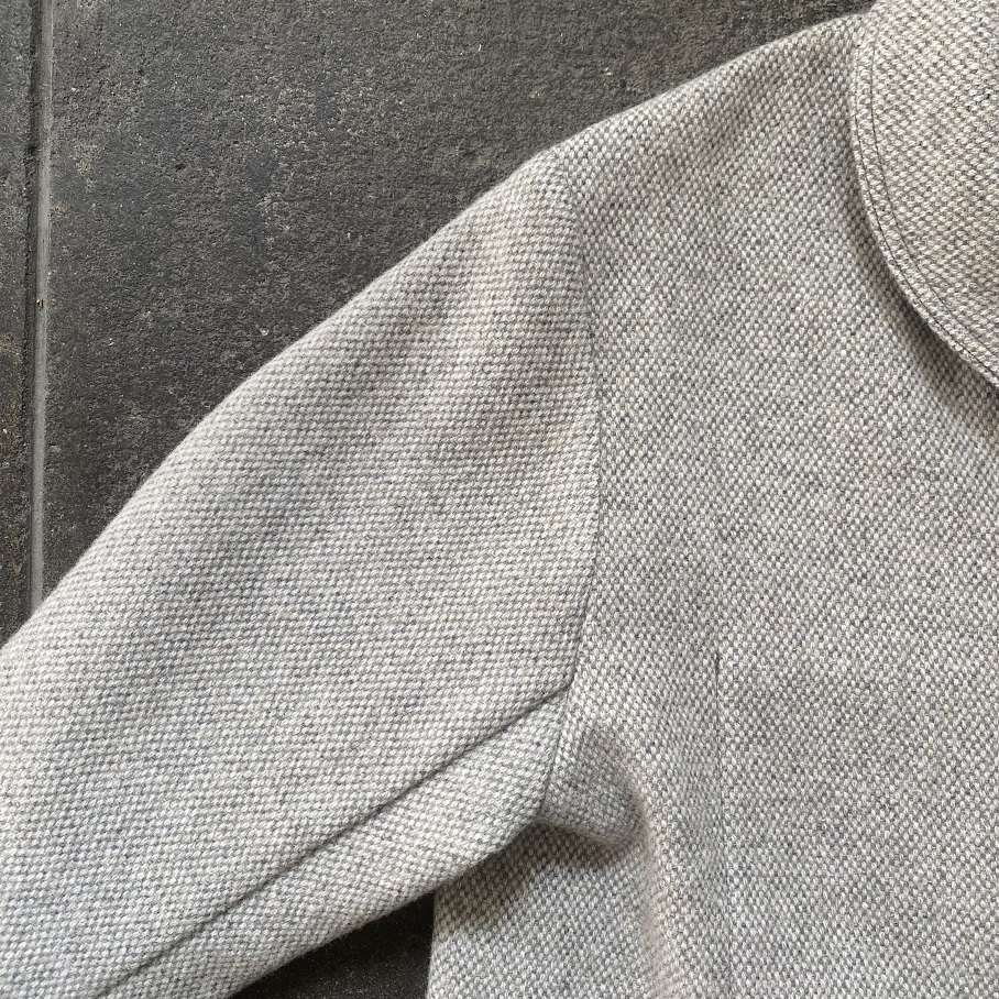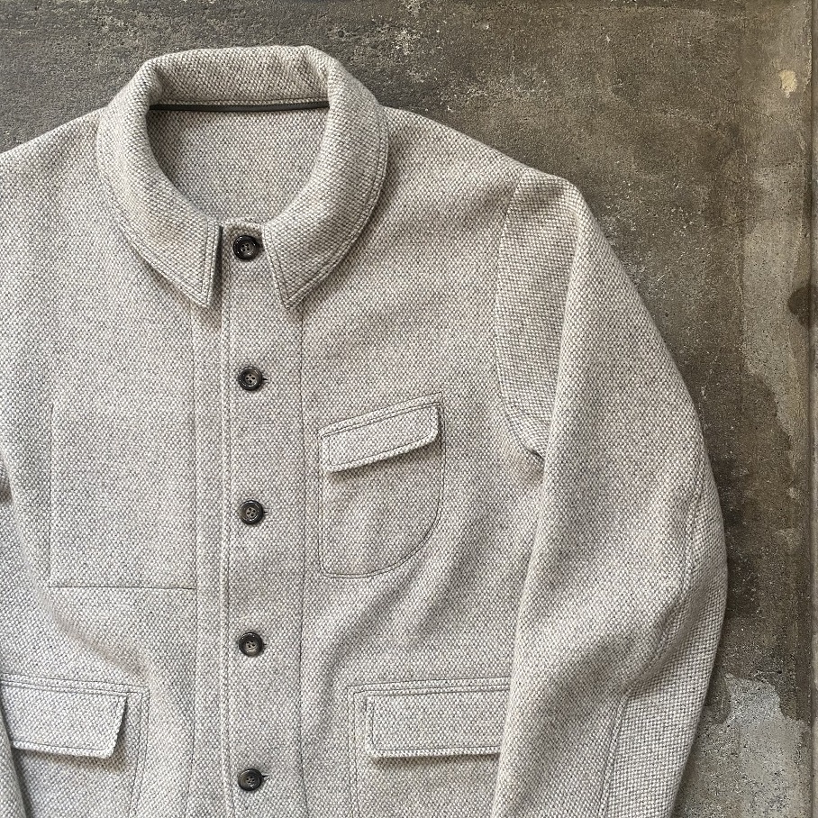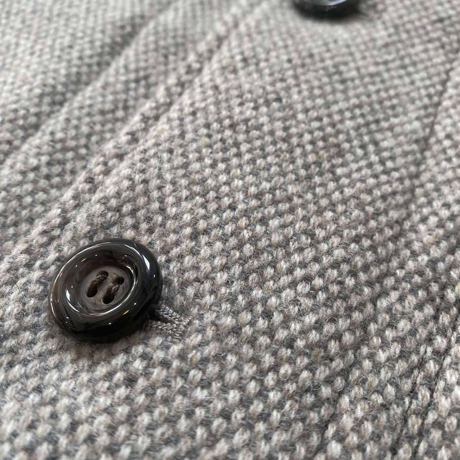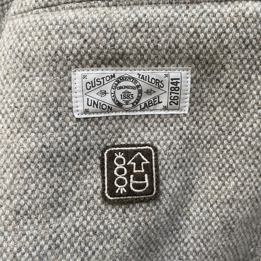 肩回りはYUIのカーディガンでもお馴染みの自然に落ちる緩やかな袖付けを参考にウールジャケットにありがちなつっぱった肩回りの形状を修正して美しく袖付けしております。