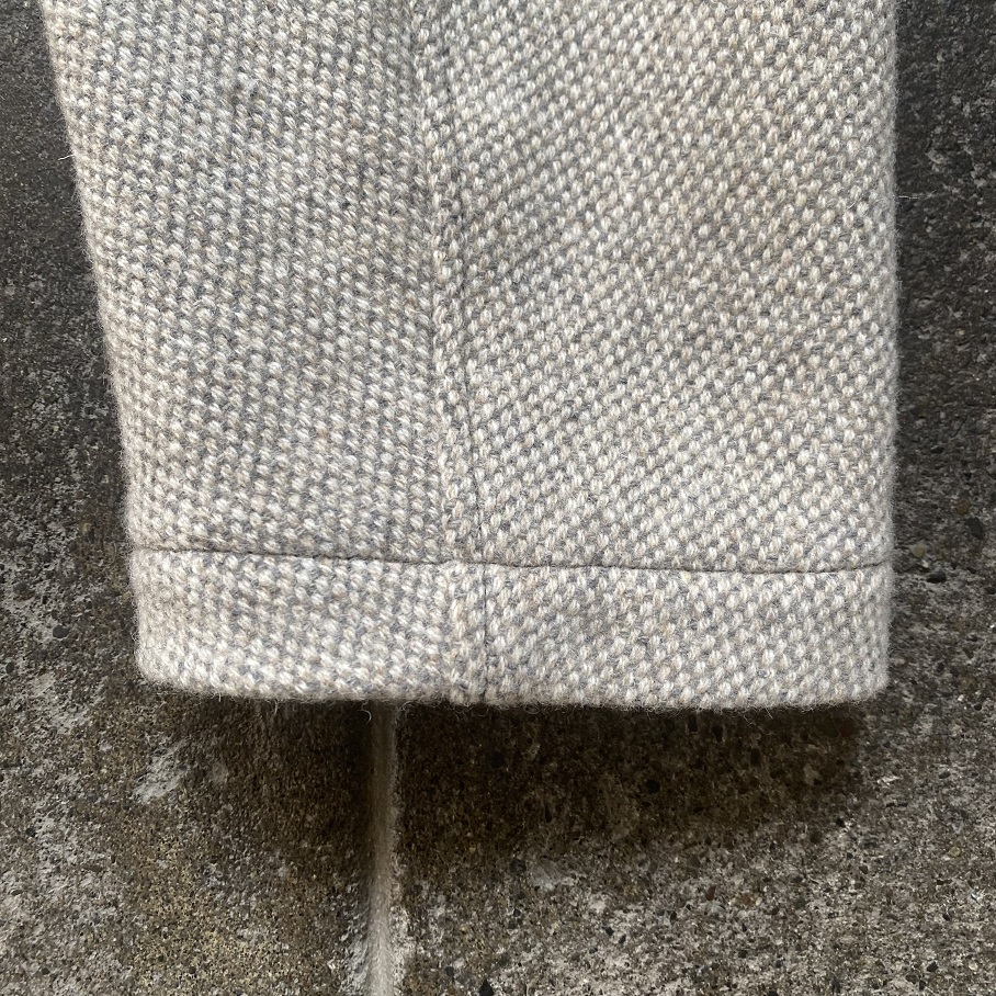 YUIさんが今季オリジナルで製作した経糸、緯糸共に二本ずつ引き揃えて織る”ナナコ織り”ウール生地を使用しております。