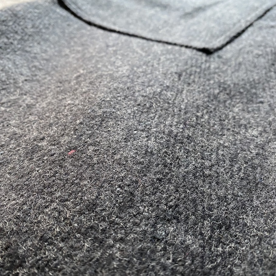 80%ウール・20%合成繊維の生地ですがデッドストックらしいゴワっとしたデッドストックらしい生地感となります。
