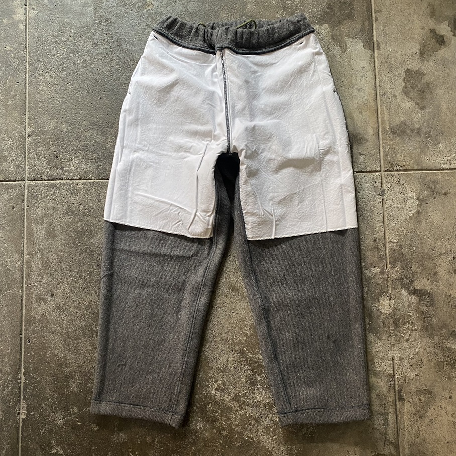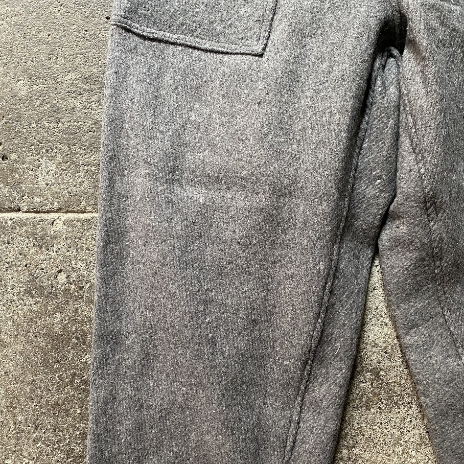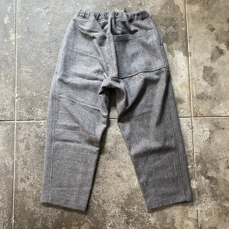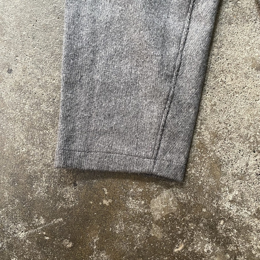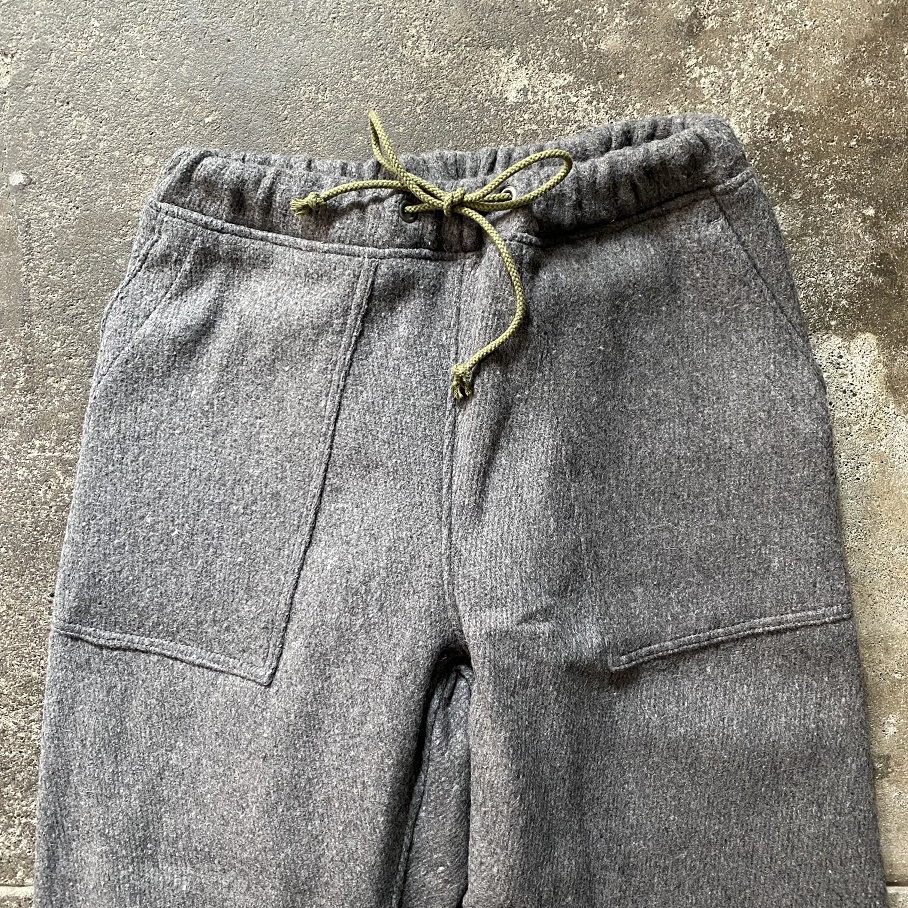 単体で見るとスエットパンツなどでお馴染みの杢グレーなどと同じようなカラーに見えますが、そこはやはり地厚のあるウール生地。履いてみると楽な履き心地でありながらウール独特の品のある仕上がりとなっております。