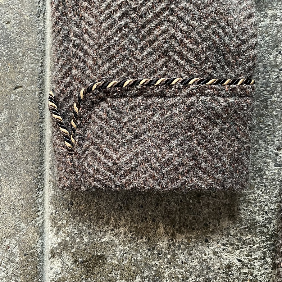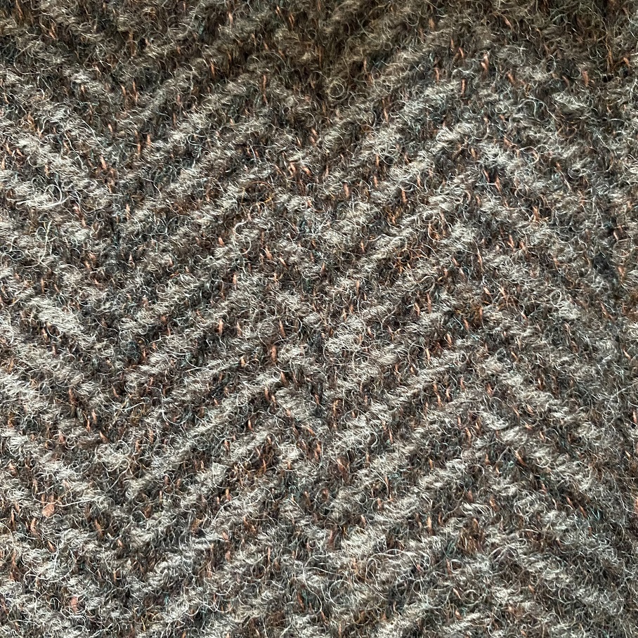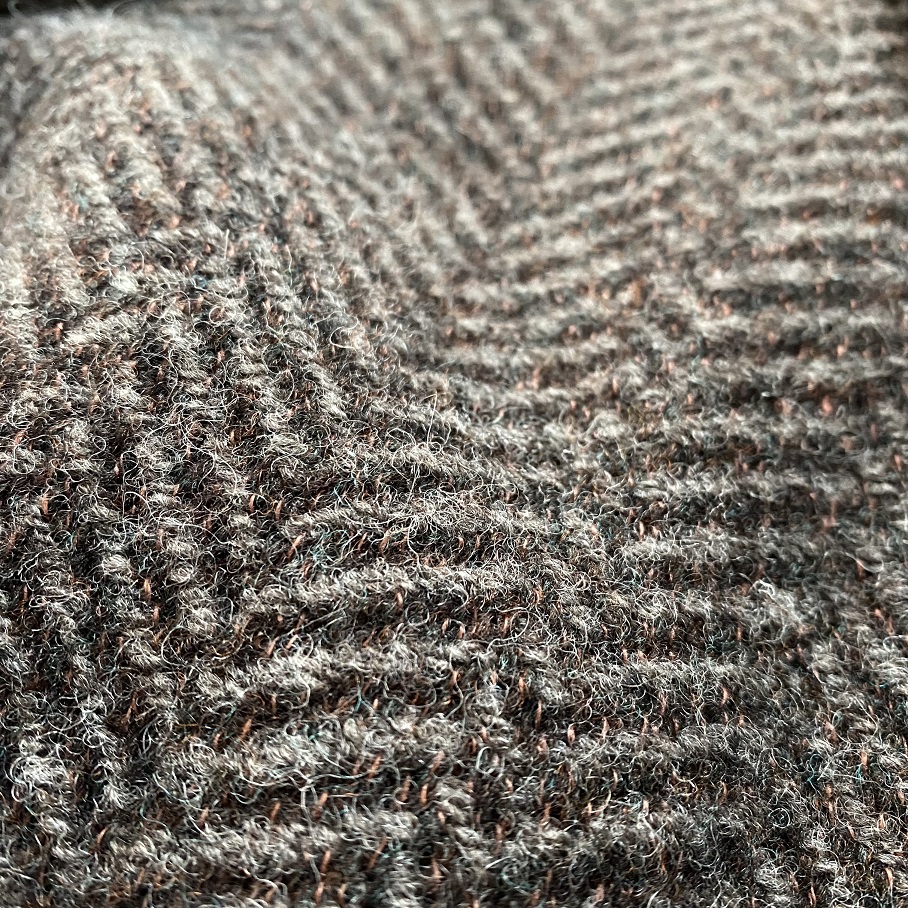 素材にはシェットランドウール88%とリネン12%を用いたブランケット生地を使用したヘリンボーン織り(杉綾織り)です。