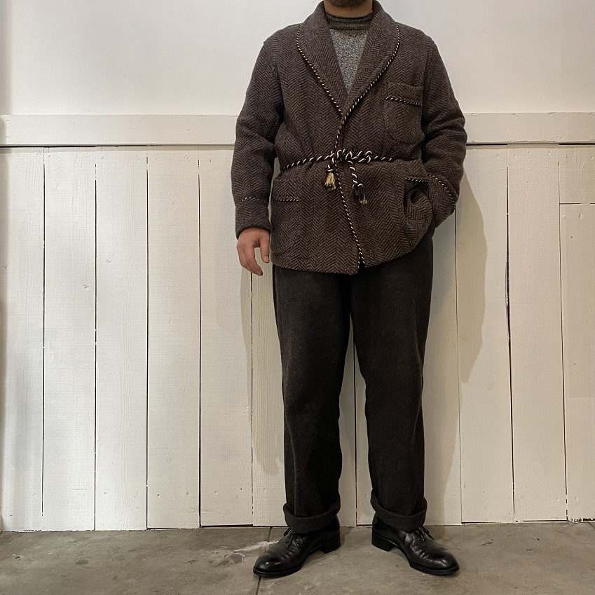 本日は久しぶりのご紹介となりますが入荷するとすぐに店頭で売り切れてしまっておりましたTHE CIRCA BRANDのスモーキングジャケットのご紹介をさせていただきます。