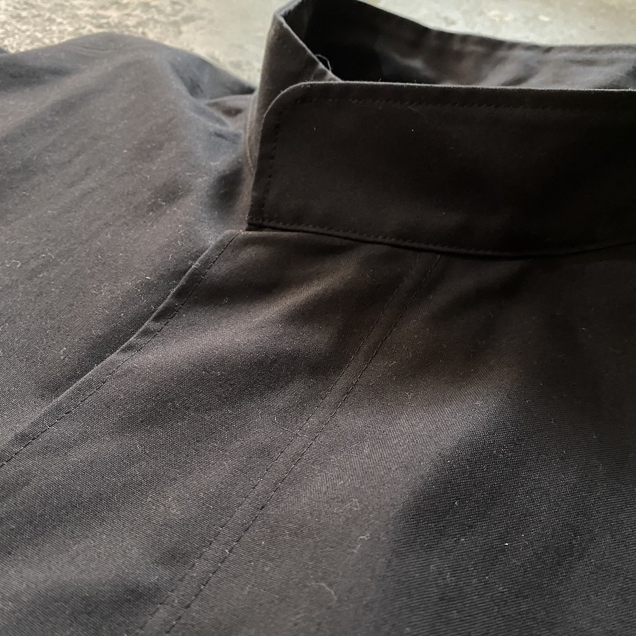 通常のM-65コートではライナー・フードを後付けで装備するためのボタンなどが首周りに多数付属しますがそういった付属を省き、究極のシンプルなスタンドカラーとなっております。