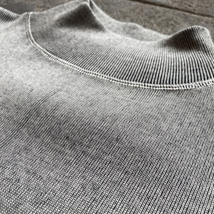 OLDE HOMESTEADERの生地の中でも伸縮性の高い生地感と柔らかな肌触りが特徴の ”INTERKNIT RIB”(インターニットリブ)を使用したMIL MOCK NECKのご紹介となります。
