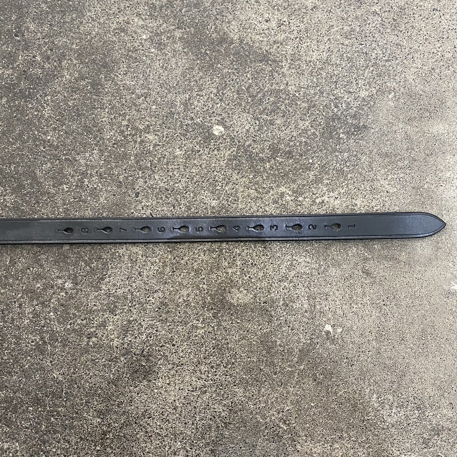 今回入荷は表記”XL”となります。ウエスト対象サイズは76㎝~88㎝までが対象サイズとなっておりますが、実寸で72.5㎝・75.5㎝・78.5㎝・81.5㎝・84.5㎝・87.5㎝・90.5㎝・93.5㎝(計測はホール中央部)に孔がありますので様々な方にご愛用頂けるベルトかと思います。