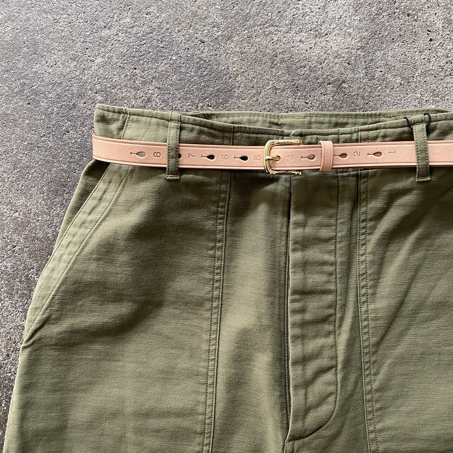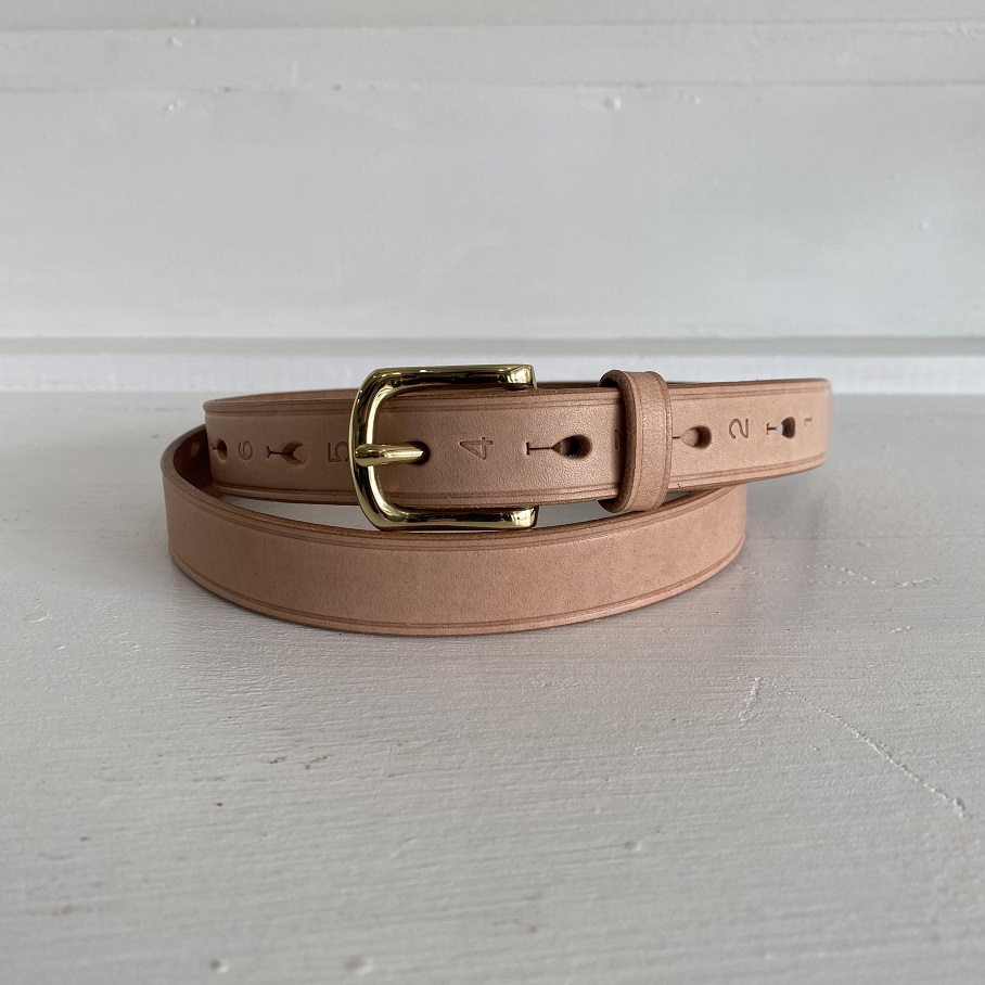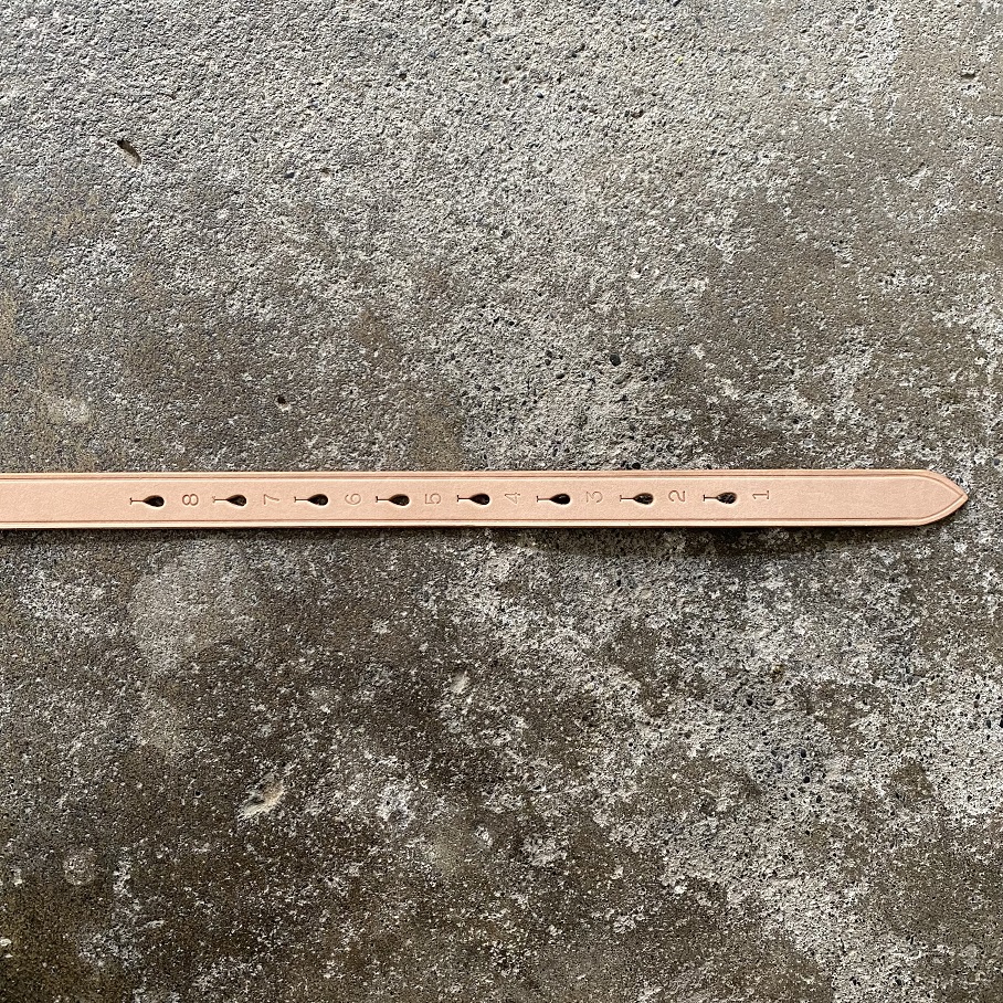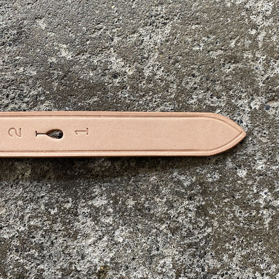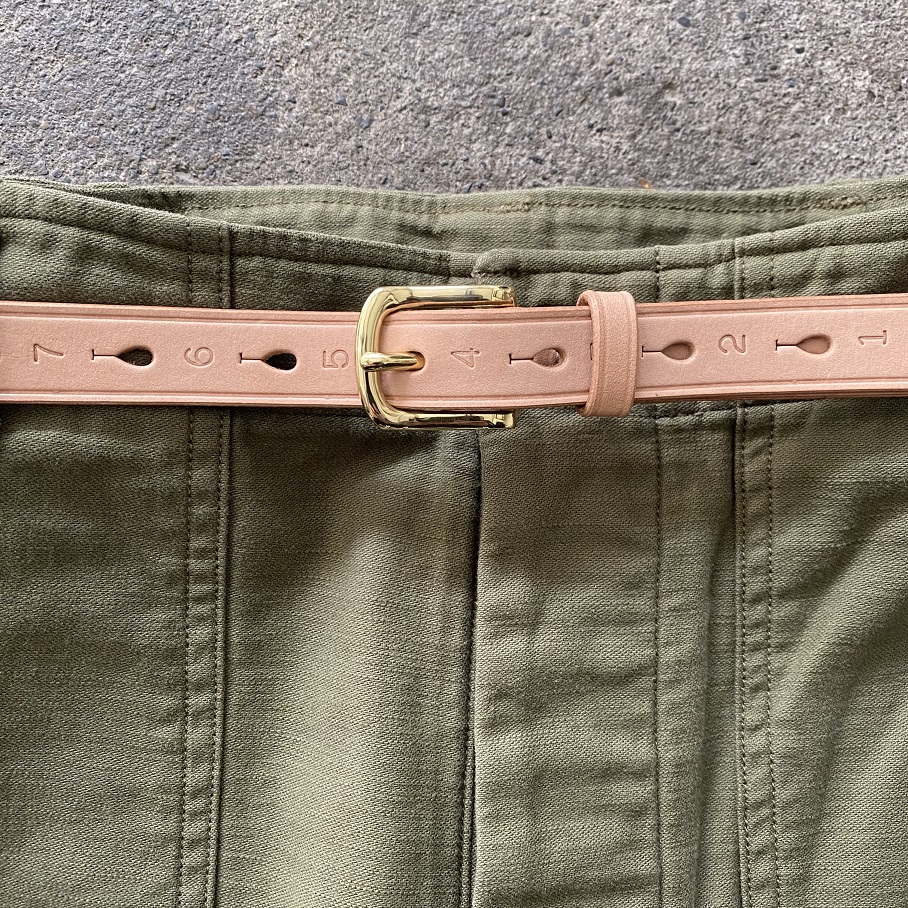 幅は約2.1㎝と非常に細目でありますが、古着やクラシックなディティールのパンツはベルトループが細い物も多いのでそういったパンツとの相性も非常に良さそうです。
