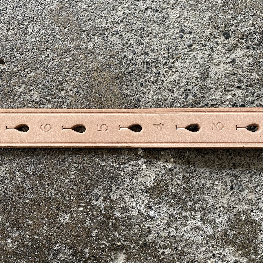 雫型のベルトホールと1~8まで打たれたナンバリングが目を惹きます。