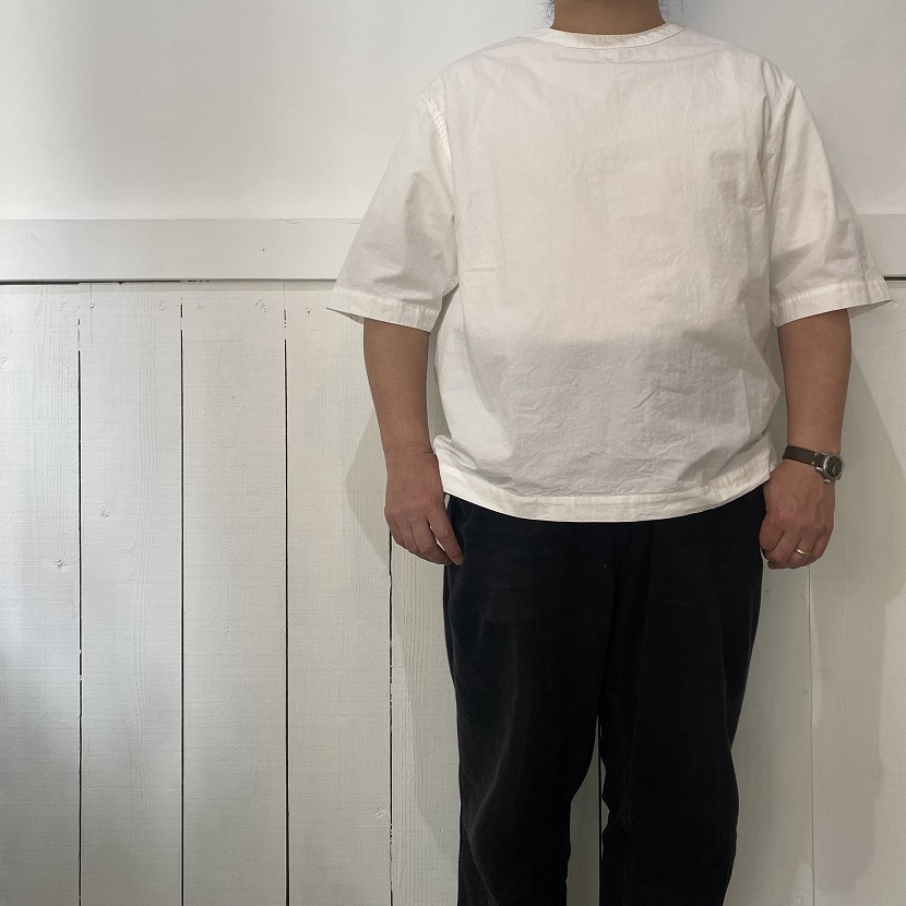 今までありそうで無かったハーフスリーブ・スモック。Tシャツの上にもう一枚・・・という時にとてもおすすめな一着となります。