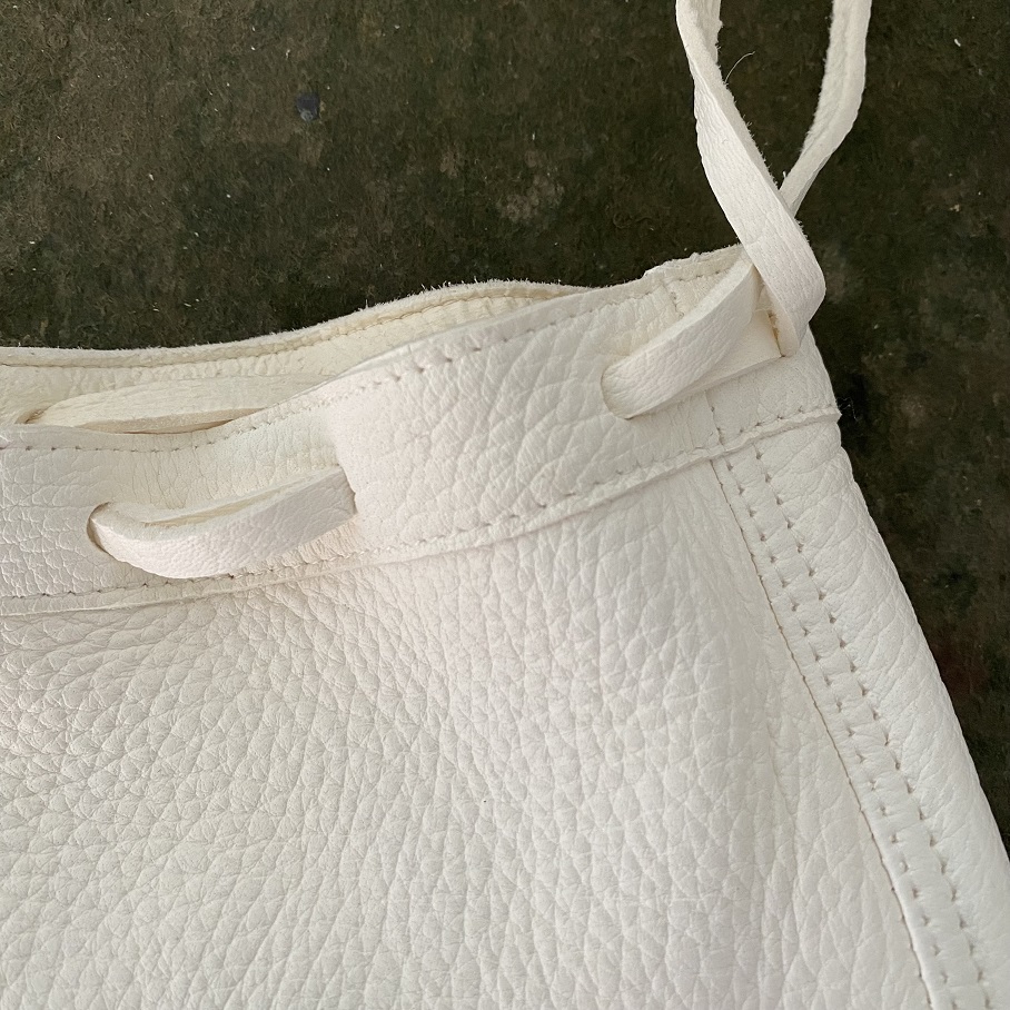 厚みがありながらとても柔らかい上質なディアスキンは真っ白な状態ですが、使い込むほどに黄色味が増し、傷や汚れが付くほどに迫力が増していく事が想像できます。