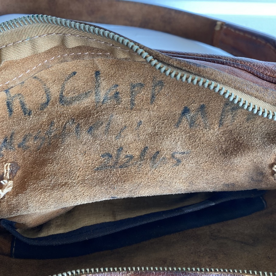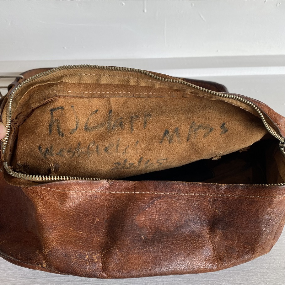 文字の通りでしたら、1965年の2月にマサチューセッツ州在住のクラップさんが使用していたレザーのウエストバッグとなります。