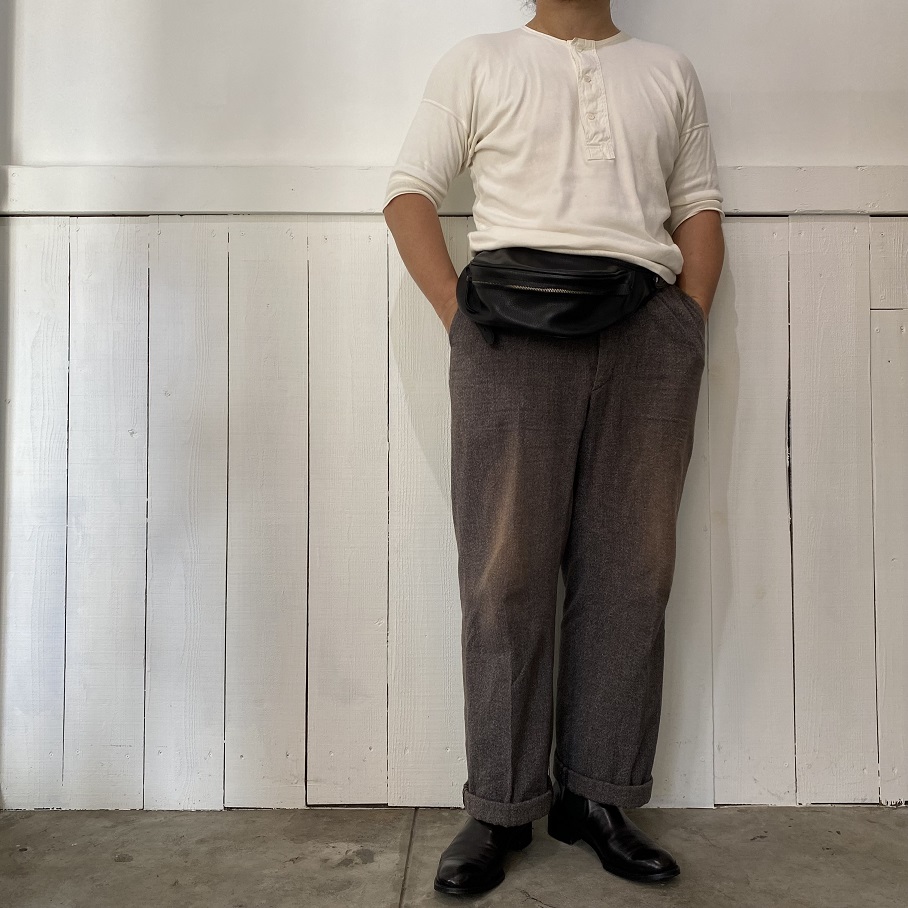 昨日ご紹介させていただきました当店の8周年を記念して製作させていただきましたオリジナルアイテムとなるウエスト&ショルダー 2way バッグの“Clapp Bag”ですが本日は参考としたビンテージバッグと着用イメージ、その他をご案内させていただきます。