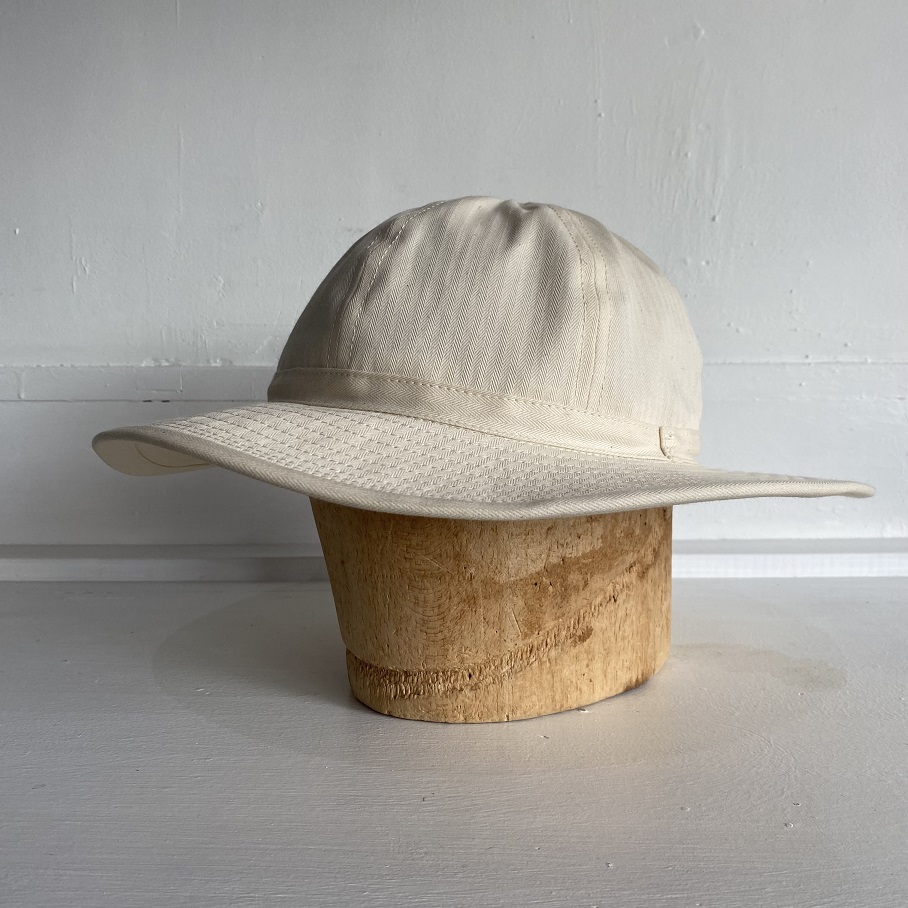 1940年代にU.S.ARMYで採用されていたFATIGUE HATをモチーフに当店のオリジナルキャップの“Prisoner Work Cap”でも採用しているNatural White Herringbone生地を使用したファティーグハットを製作いたしました。