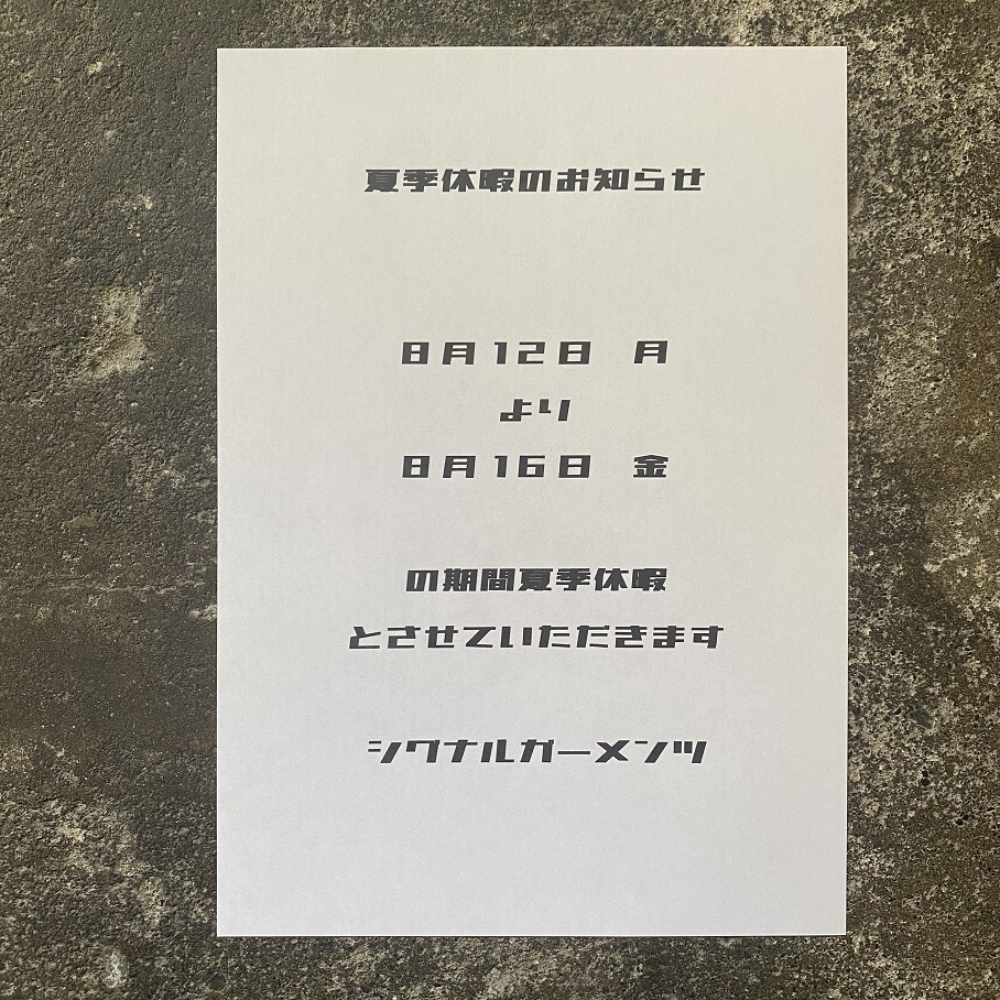 8月12日(月)~8月16日(金)の期間、店舗は休業とさせていただきます。