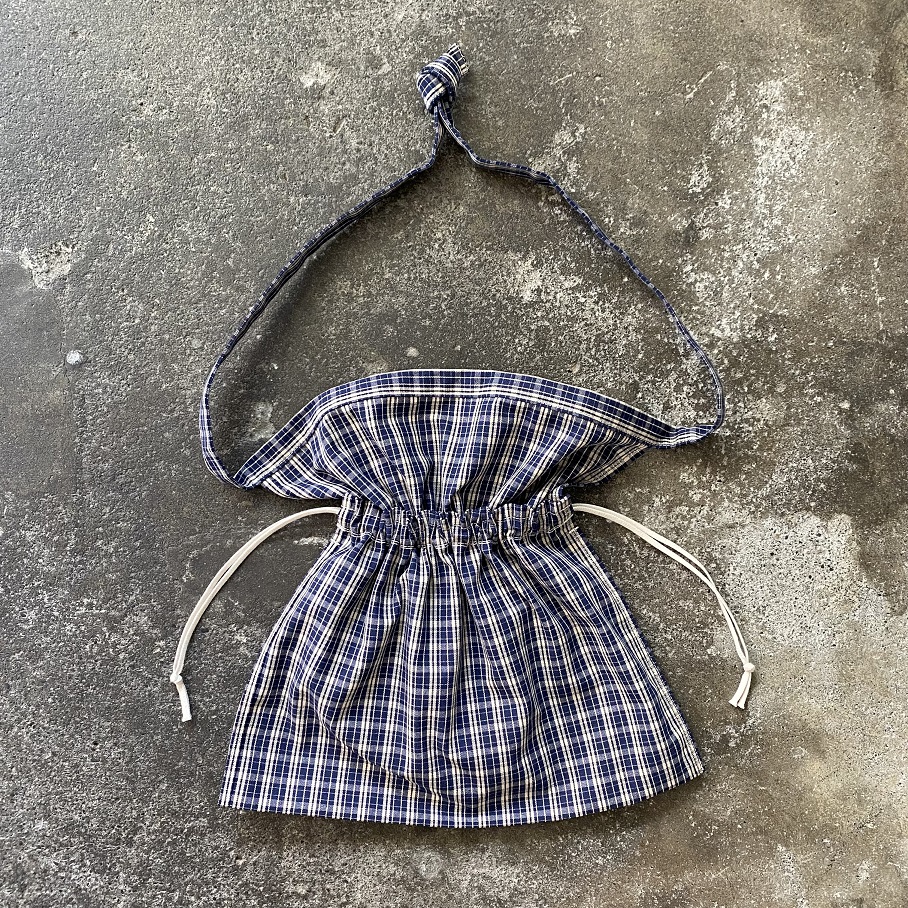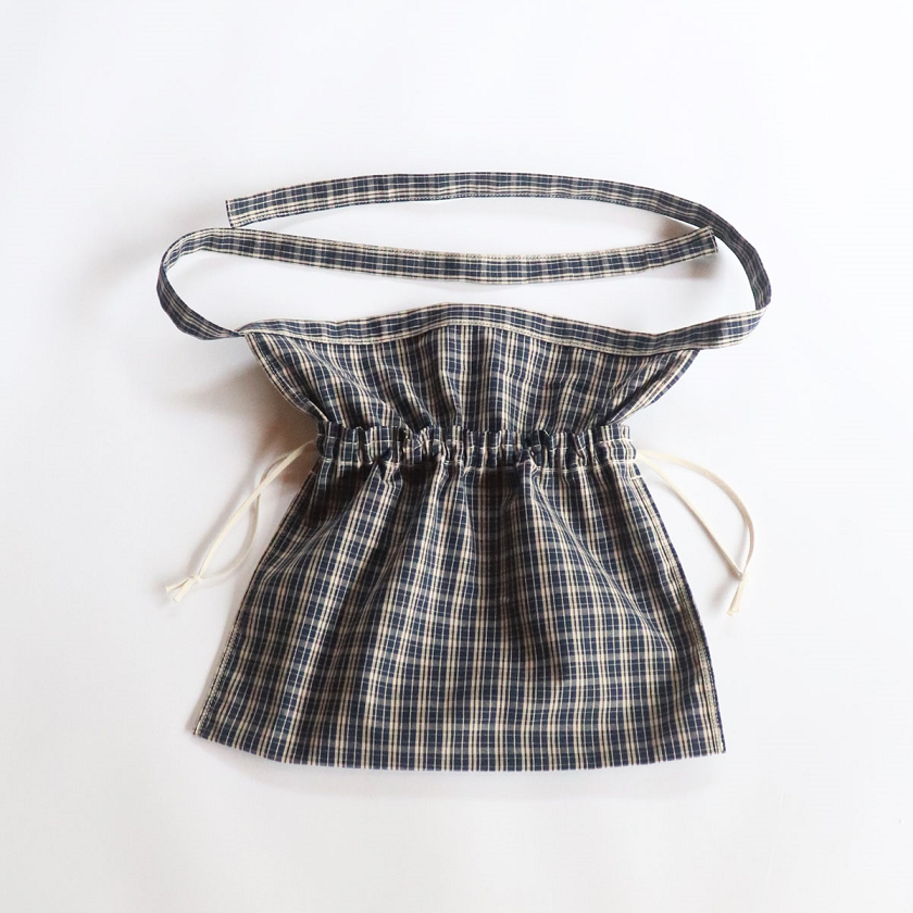 元々のモチーフはあくまでエプロンとなるので、ショルダーなどで背負う場合はベルト部分同士を結んでご使用ください。