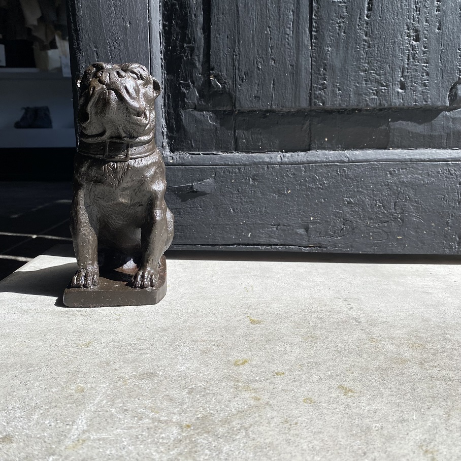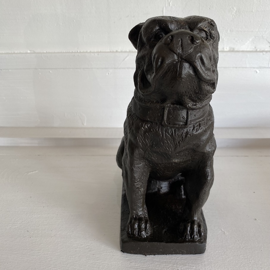 ブルドッグのドアストッパーでお座りをしている物はあまり見かけたことがありませんので珍しい個体かと思います。